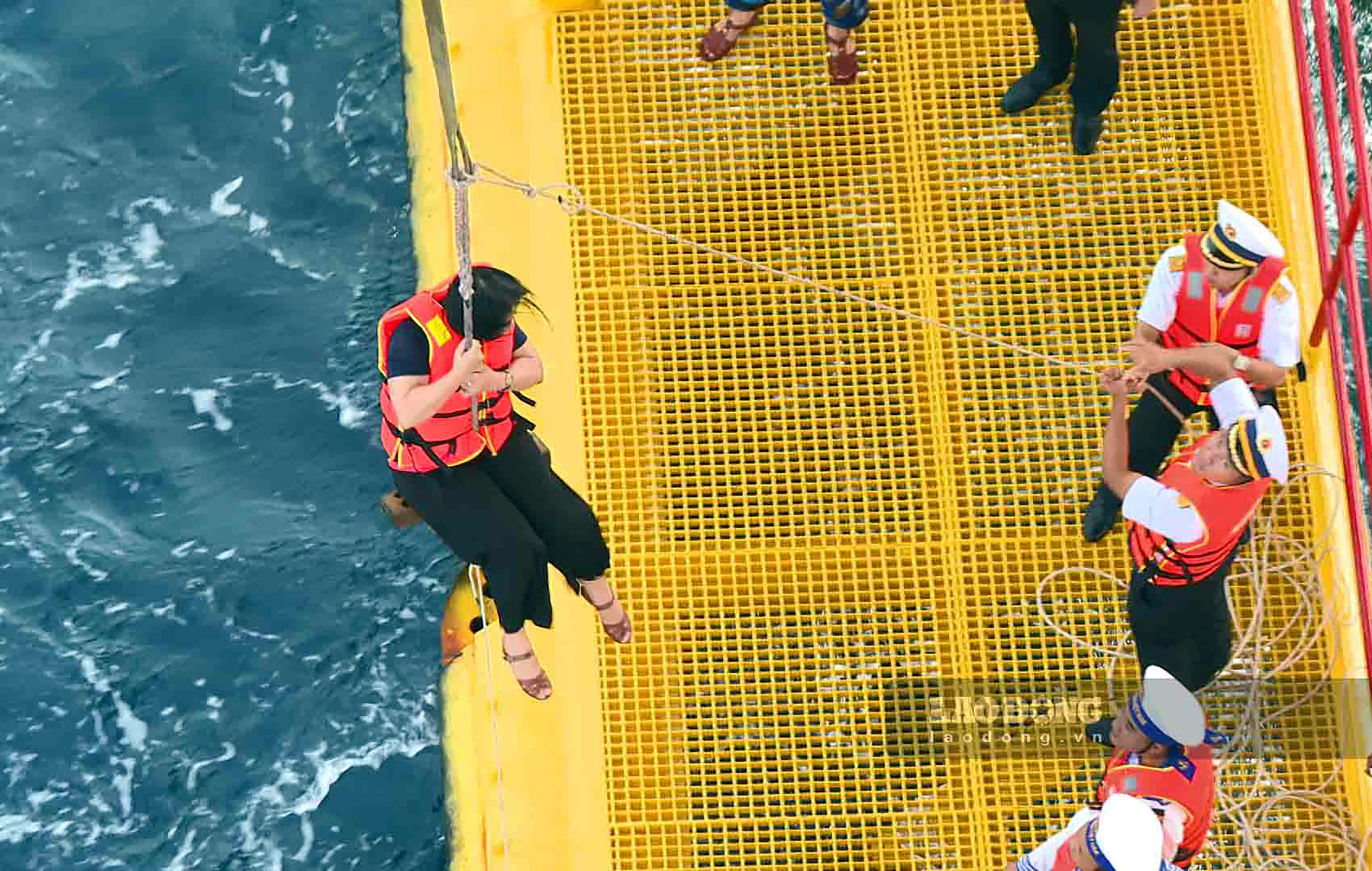 Đưa người và hàng hóa lên nhà giàn bằng hình thức đu dây, cách mà có lẽ chỉ có ở Nhà giàn DK1 thực sự thú vị với người được chứng kiến, trải nghiệm, và cũng minh chứng cho sự sáng tạo, vượt khó của chiến sĩ Hải quân Việt Nam.