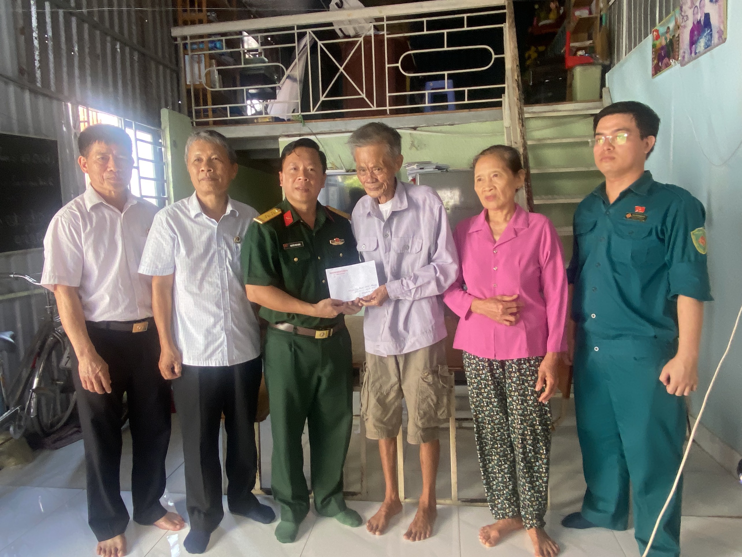 | Trung tá Nguyễn Thái Nhân, Chính trị viên Ban CHQS thành phố trao quà cho CCB Trịnh Đình Phương, phường Nguyễn An Ninh, TP.Vũng Tàu. |