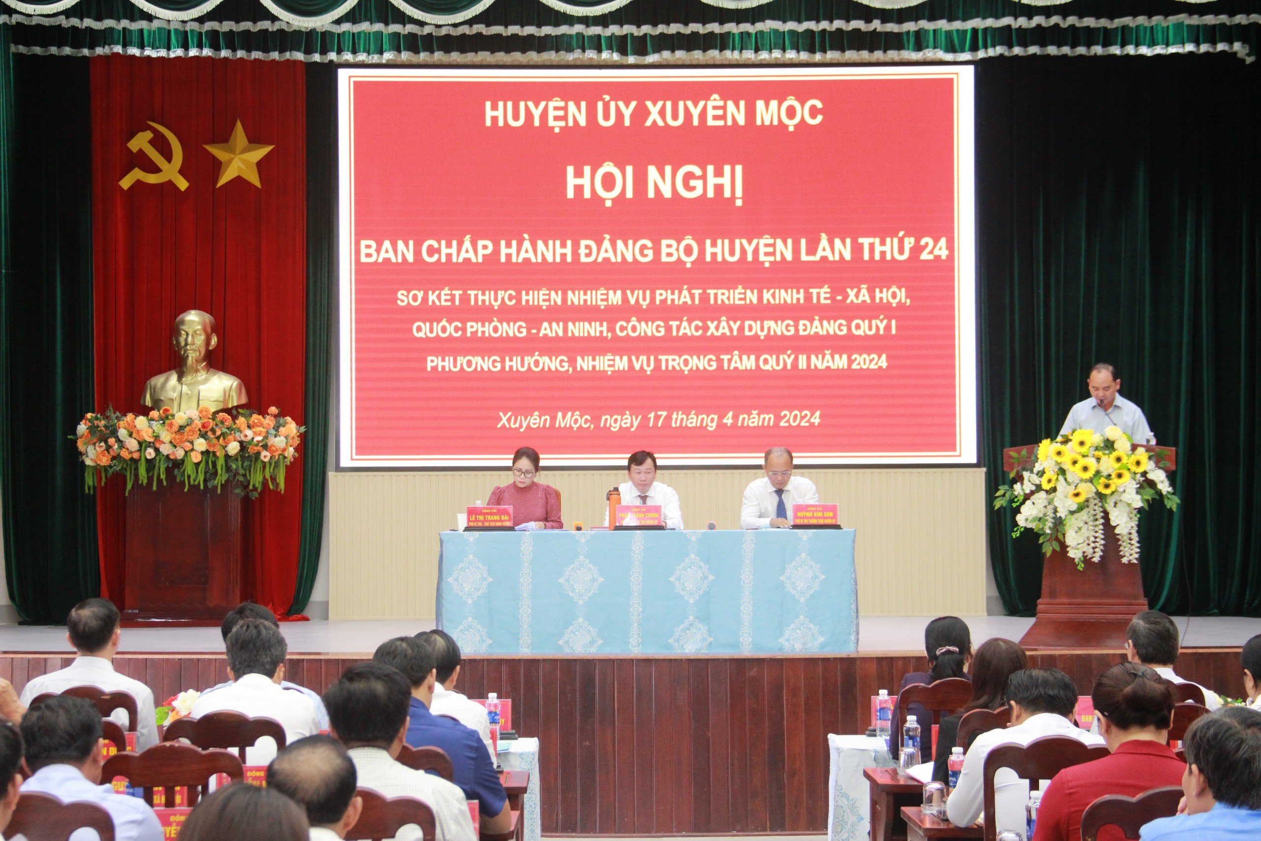 Chiều 17/4, Huyện ủy Xuyên Mộc tổ chức Hội nghị Ban Chấp hành Đảng bộ lần thứ 24 về sơ kết thực hiện nhiệm vụ phát triển kinh tế - xã hội, quốc phòng - an ninh quý I; phương hướng nhiệm vụ quý II/2024.
