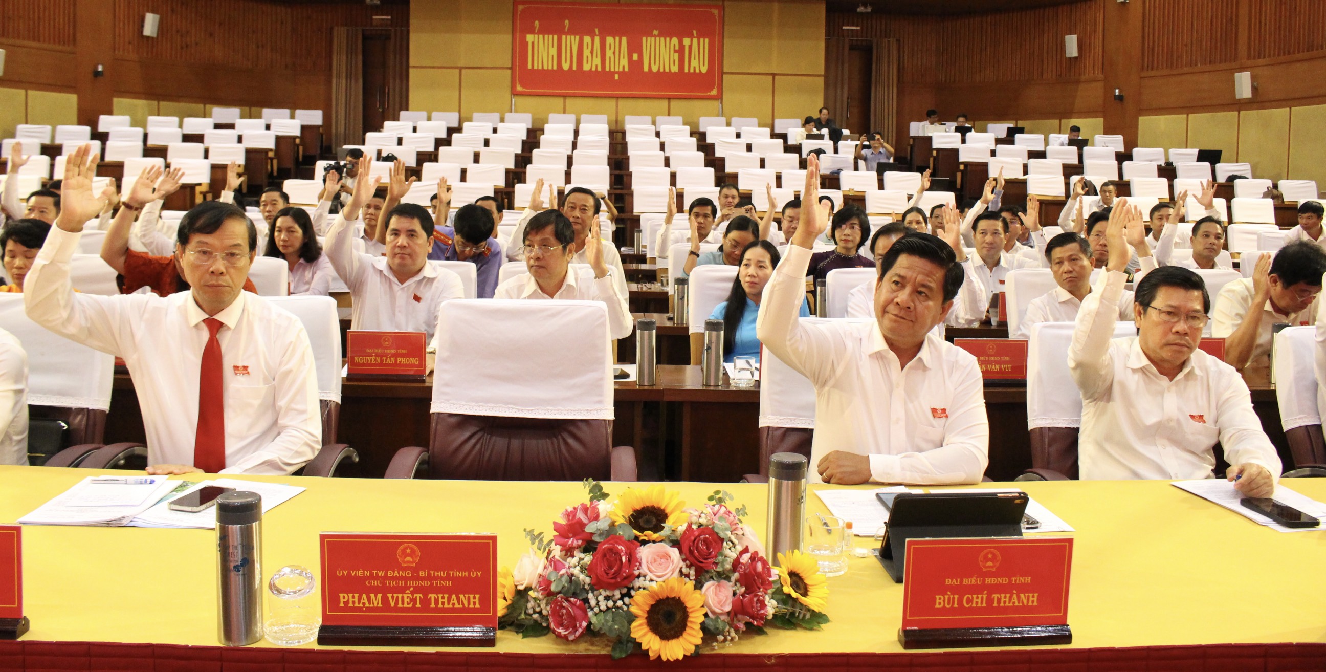 | Các đại biểu biểu quyết thống nhất thông qua nghị quyết. |