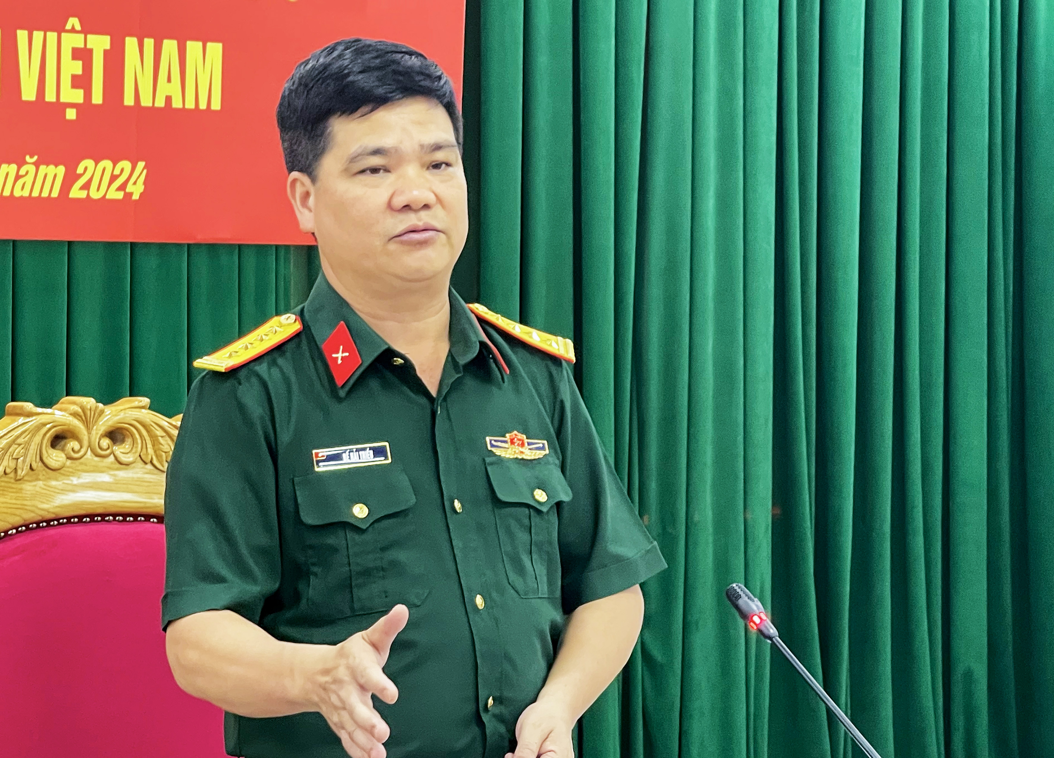 | Đại tá Bế Hải Triều, Phó Cục trưởng Cục Dân vận, Tổng Cục Chính trị Quân đội Nhân dân Việt Nam phát biểu kết luận hội nghị. |