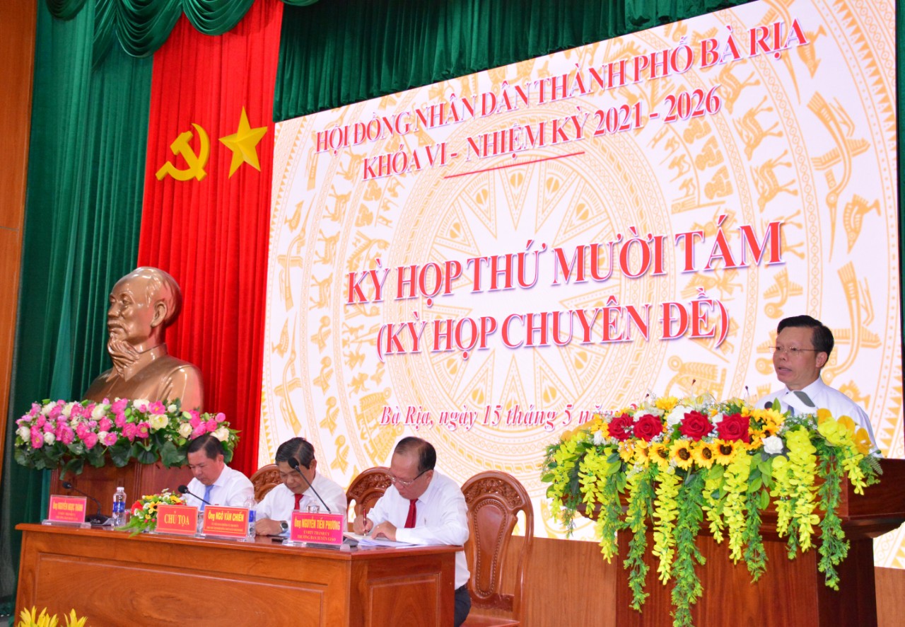 Chiều 15/5, HĐND TP. Bà Rịa khóa VI, nhiệm kỳ 2021 - 2026 tổ chức Kỳ họp thứ Mười Tám (kỳ họp chuyên đề) để xem xét các Tờ trình của UBND thành phố về sắp xếp đơn vị hành chính và đầu tư công.