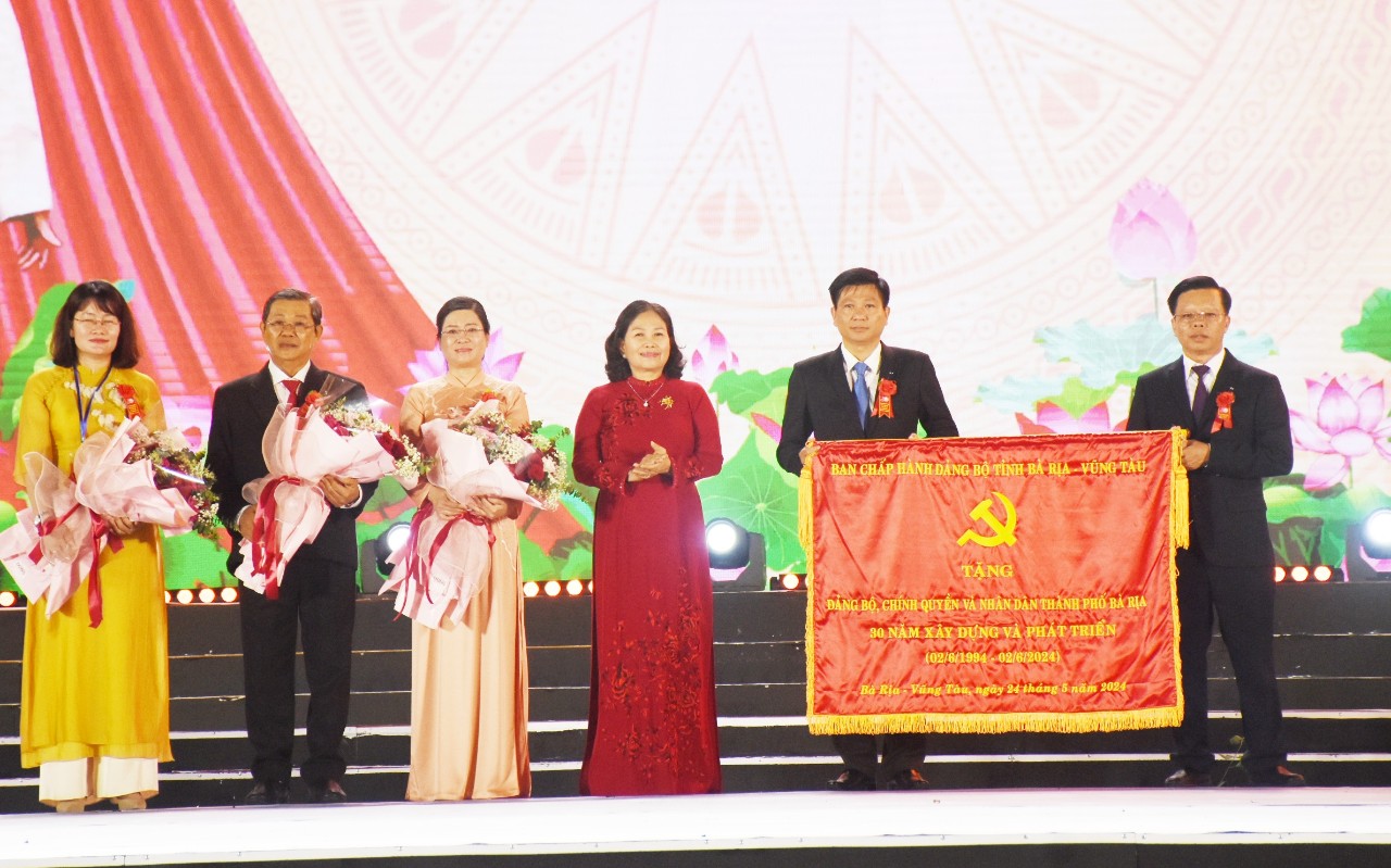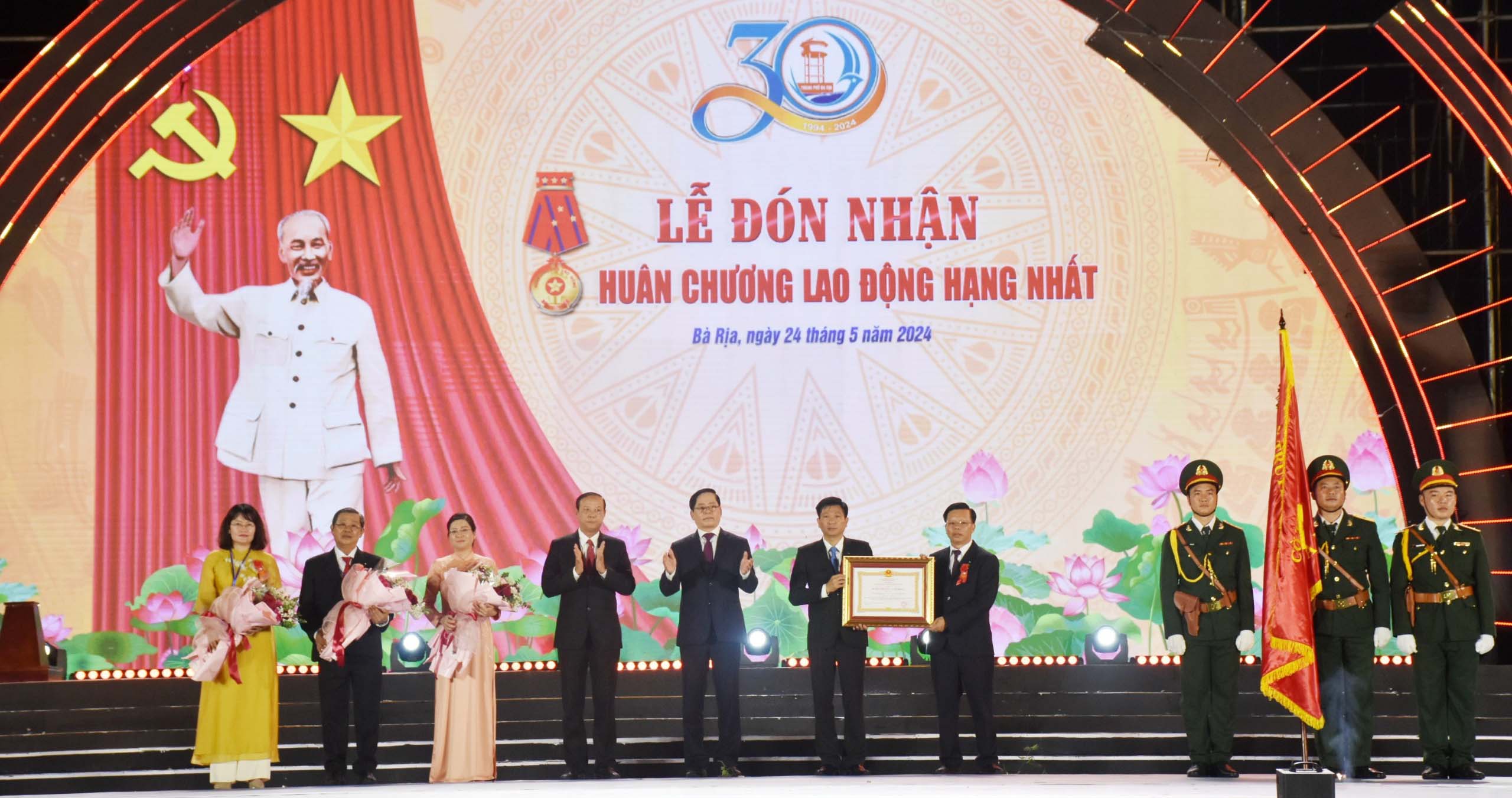 Tối 24/5, tại Quảng trường Công viên Bà Rịa, Thành ủy, HĐND, UBND, UBMTTQ VN TP.Bà Rịa tổ chức trọng thể Lễ kỷ niệm 30 năm thành lập TP.Bà Rịa (2/6/1994 - 2/6/2024) và đón nhận Huân chương Lao động hạng Nhất.