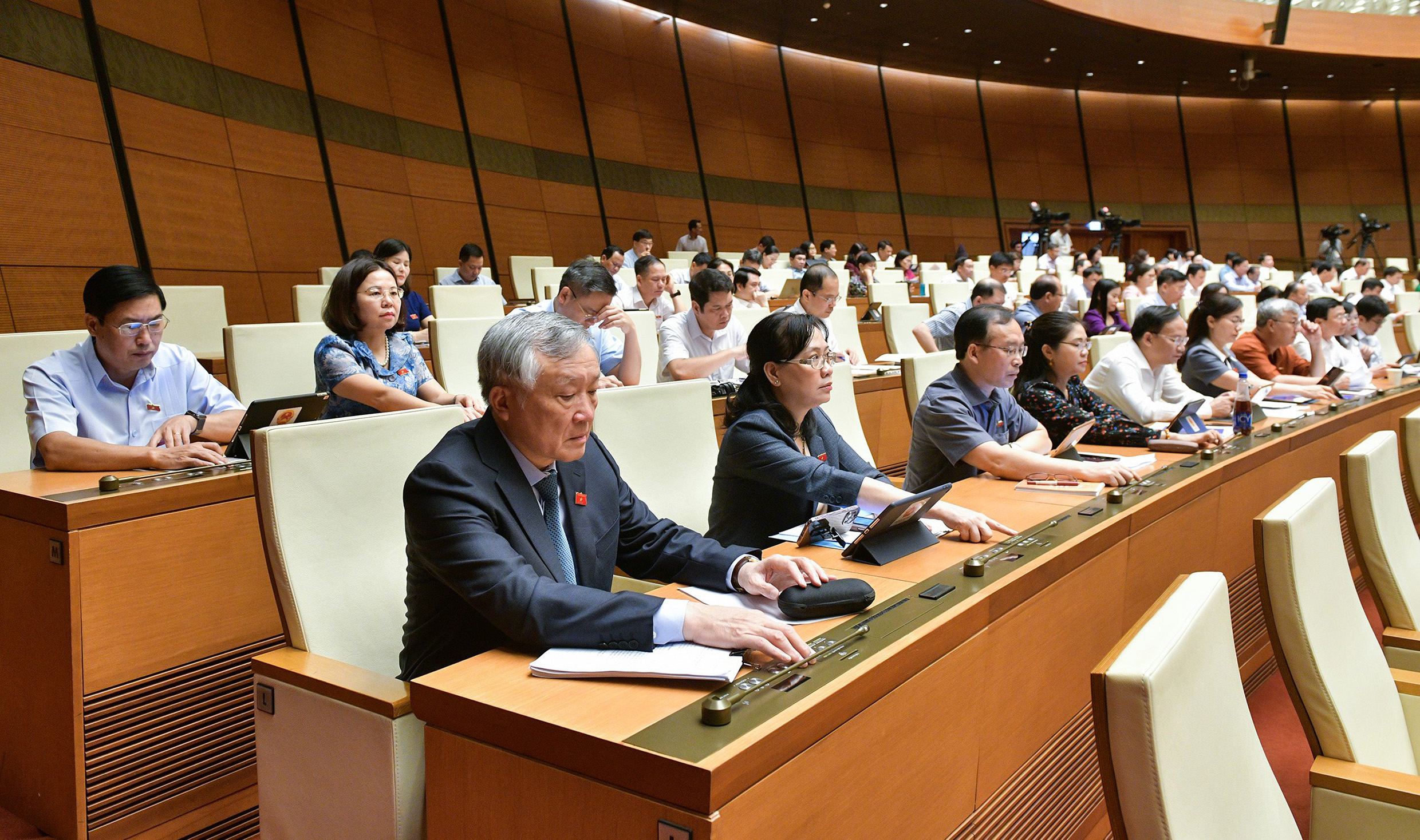 | Đại biểu Quốc hội biểu quyết thông qua Luật Lưu trữ (sửa đổi). Ảnh: quochoi.vn |