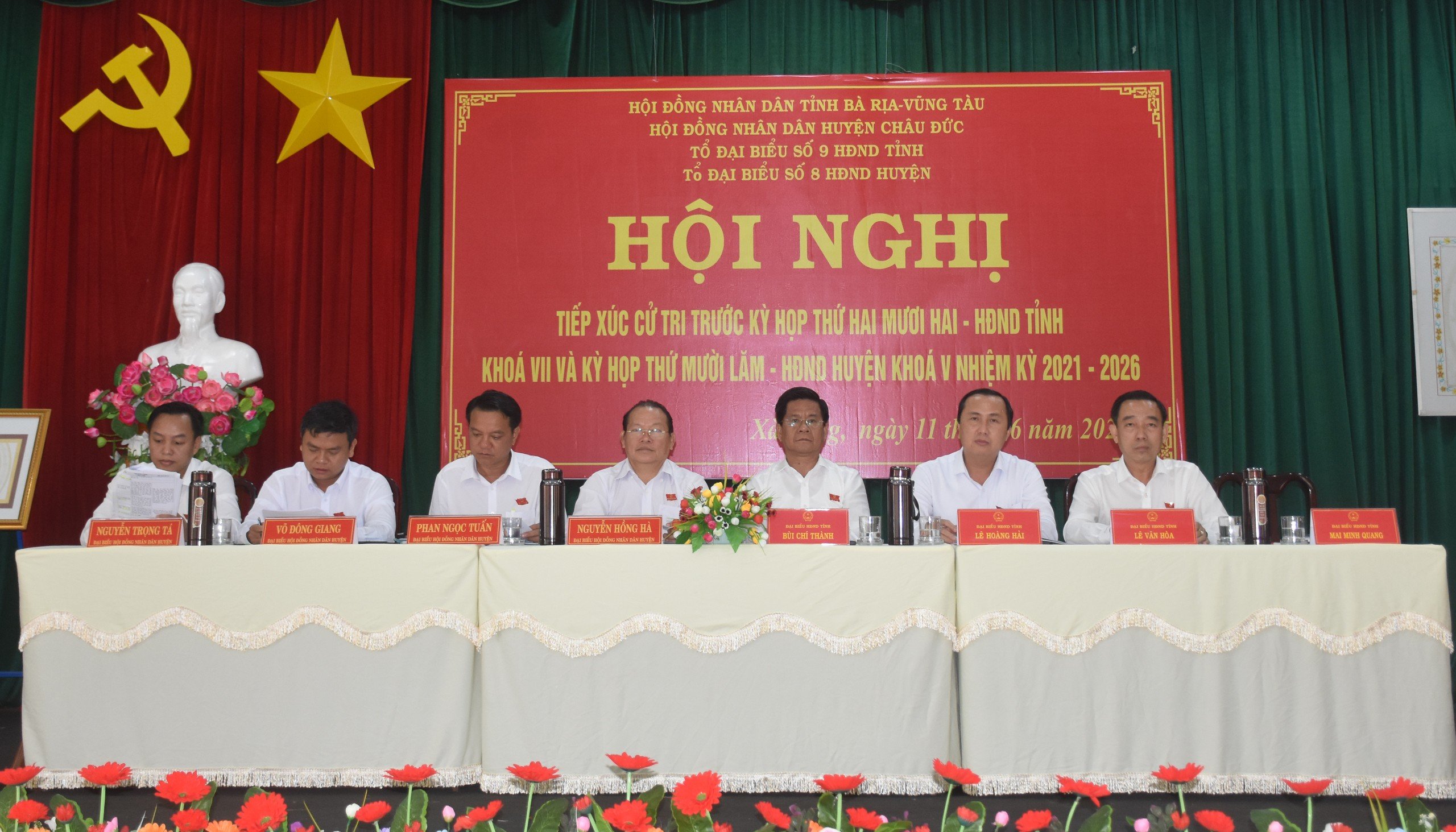 Tổ đại biểu số 9 HĐND tỉnh (ảnh dưới) gồm: ông Bùi Chí Thành, Chủ tịch UBMTTQ Việt Nam tỉnh; ông Lê Hoàng Hải, Phó Chủ tịch HĐND tỉnh; ông Lê Văn Hòa, Chủ tịch LĐLĐ tỉnh; ông Mai Minh Quang, Chủ tịch Hội Nông dân tỉnh đã TXCT các xã Xà Bang, Cù Bị và Đá Bạc (huyện Châu Đức).