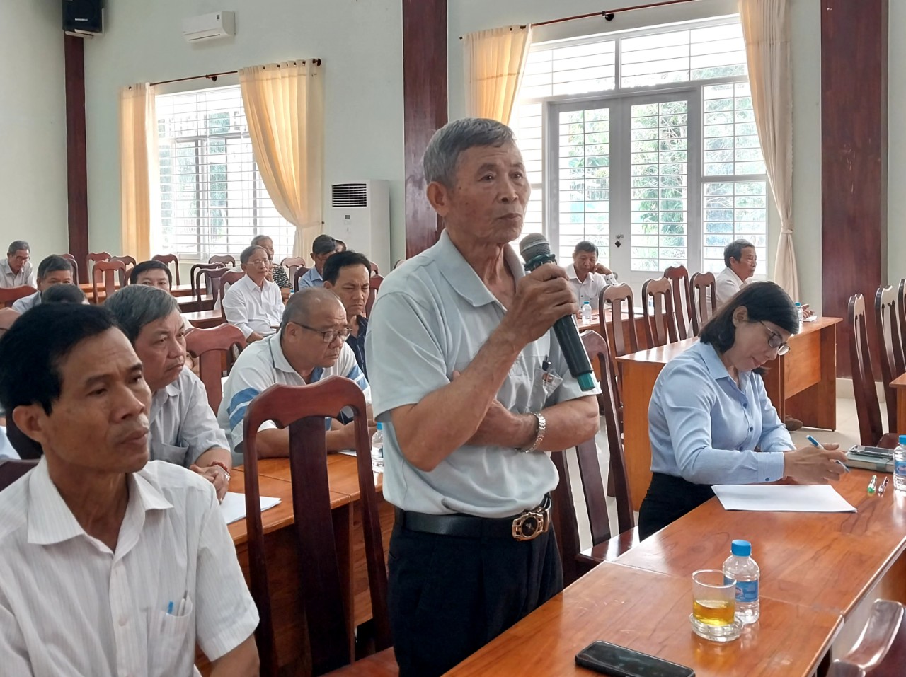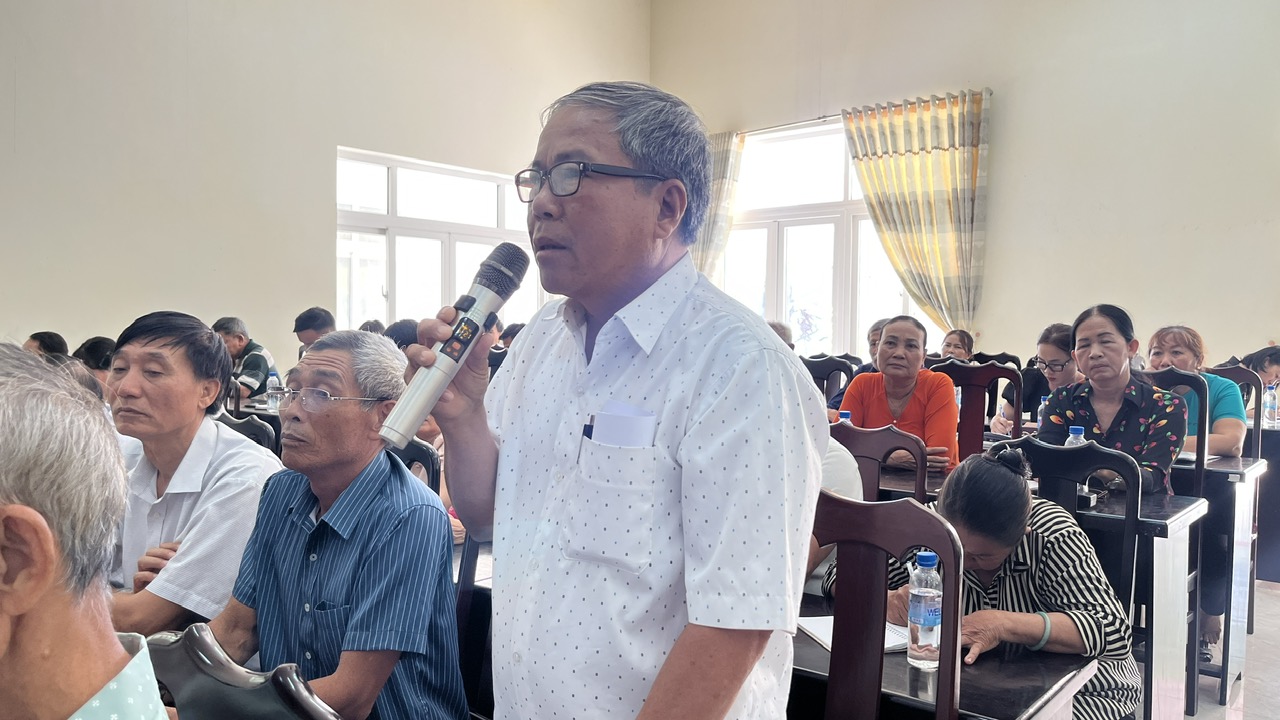 | Cử tri xã Long Sơn phát biểu ý kiến. Ảnh: KHÁNH CHI |