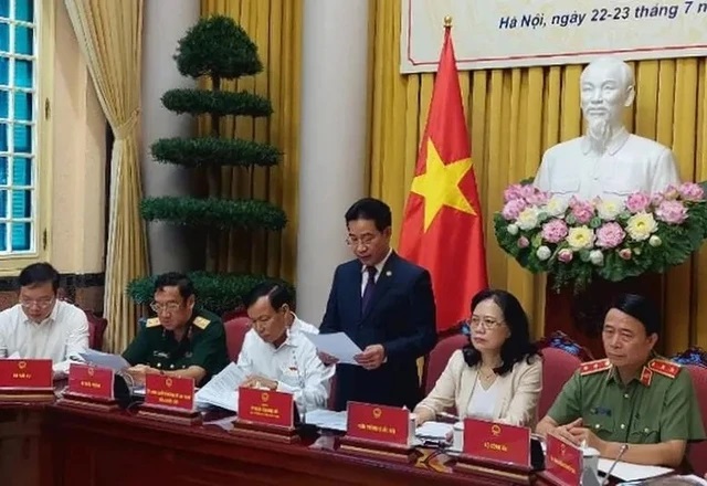 Sáng 22/7, Văn phòng Chủ tịch nước tổ chức họp báo công bố Lệnh của Chủ tịch nước công bố các luật được Quốc hội khóa XV thông qua tại Kỳ họp thứ 7, bao gồm: Luật Tổ chức Tòa án nhân dân (sửa đổi); Luật Trật tự, an toàn giao thông đường bộ năm 2024; Luật Lưu trữ năm 2024; Luật Quản lý, sử dụng vũ khí, vật liệu nổ và công cụ hỗ trợ; Luật Công nghiệp quốc phòng, an ninh và động viên công nghiệp; Luật sửa đổi, bổ sung một số điều của Luật Cảnh vệ năm 2024.