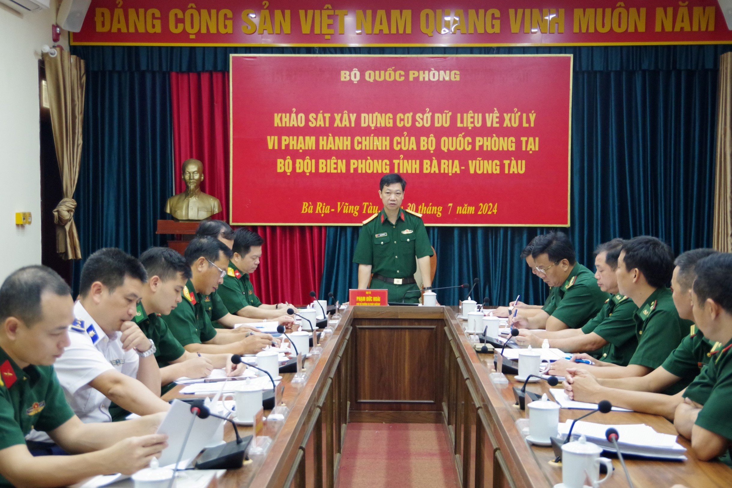 Ngày 30/7, Đại tá Phạm Đức Hoài, Phó Vụ trưởng Vụ Pháp chế Bộ Quốc phòng làm trưởng Đoàn công tác đã làm việc với Bộ đội Biên phòng tỉnh về việc khảo sát xây dựng cơ sở dữ liệu về xử lý vi phạm hành chính (VPHC) của Bộ Quốc phòng.
