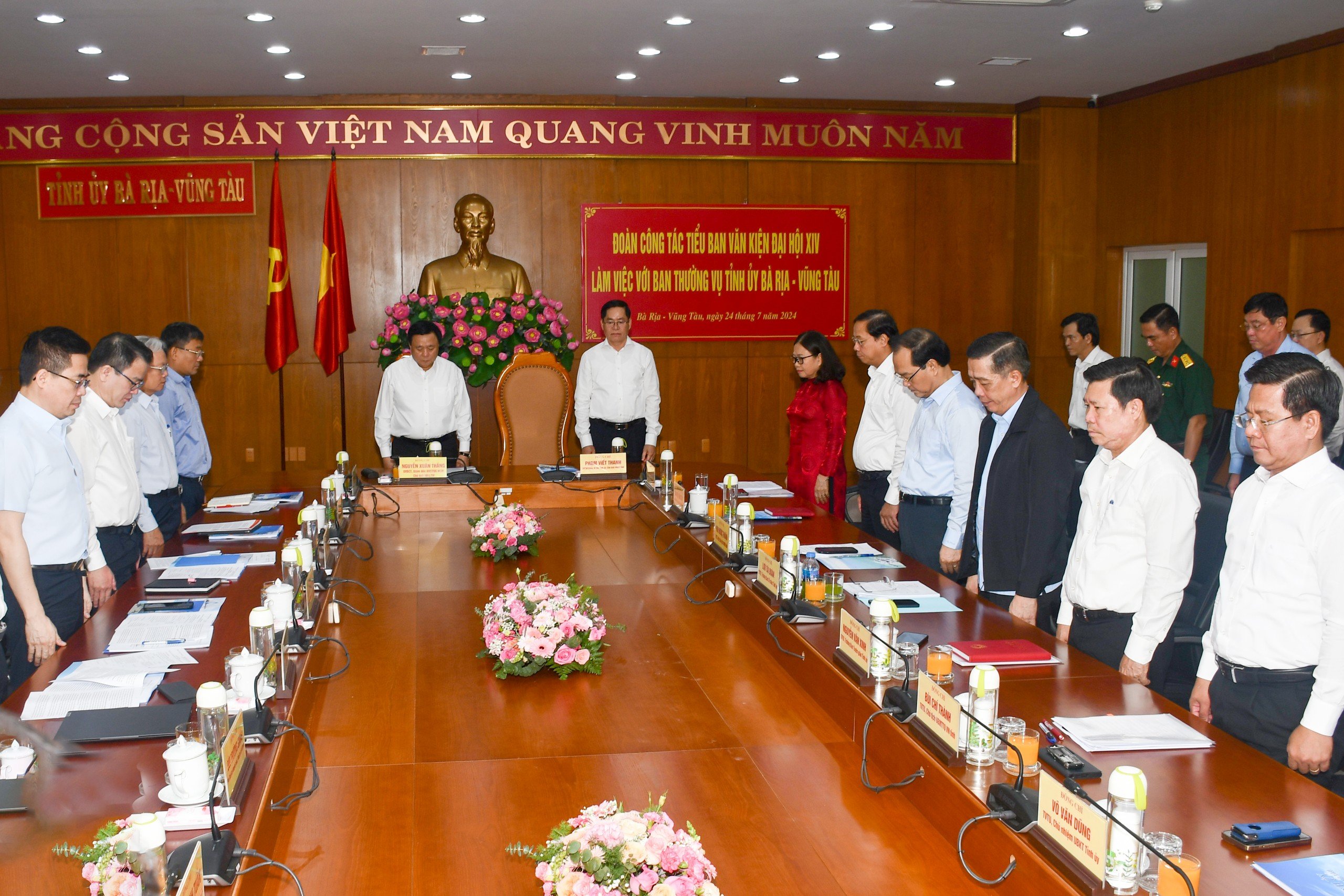 Sáng 24/7, Đoàn khảo sát của Tiểu ban Văn kiện Đại hội XIV của Đảng do ông Nguyễn Xuân Thắng, Uỷ viên Bộ Chính trị, Giám đốc Học viện Chính trị quốc gia Hồ Chí Minh, Chủ tịch Hội đồng Lý luận Trung ương, Thường trực Tiểu ban Văn kiện, Tổ trưởng Tổ biên tập Văn kiện làm Trưởng Đoàn đã làm việc với Ban Thường vụ Tỉnh ủy Bà Rịa - Vũng Tàu.