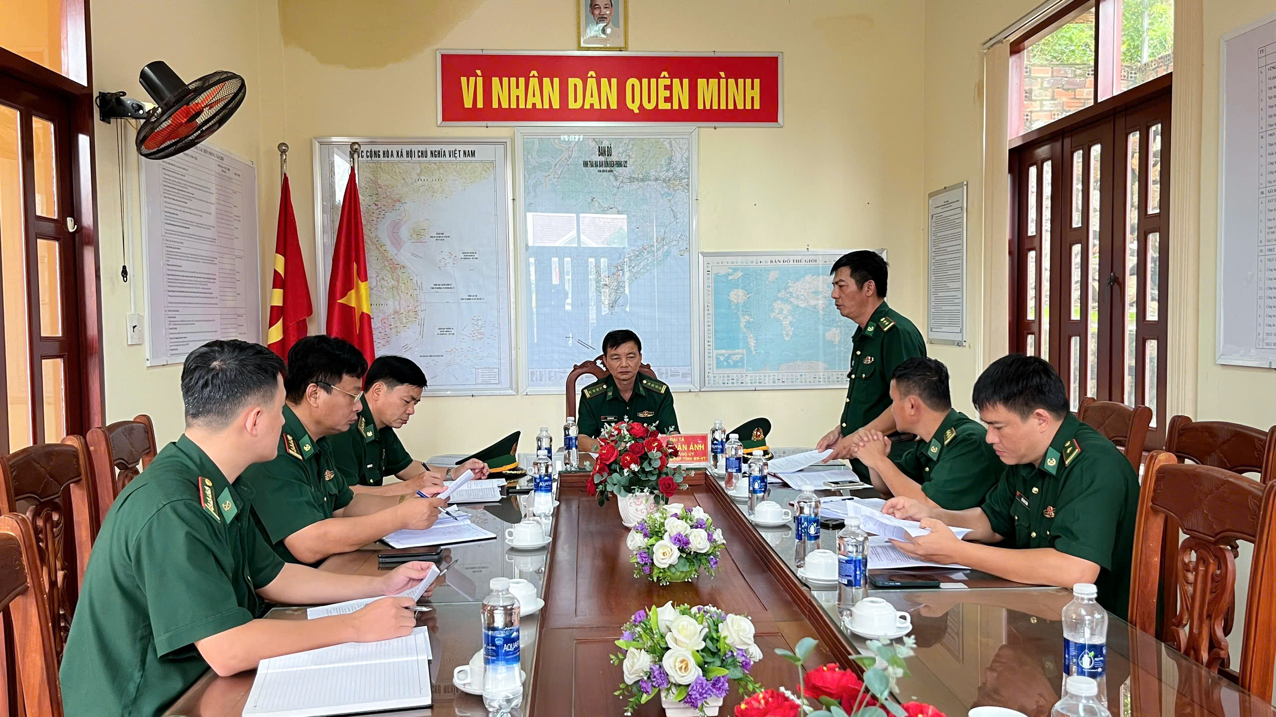 | Đại tá Đào Xuân Ánh, Chỉnh ủy Bộ đội Biên phòng tỉnh làm việc tại Đồn Biên phòng Bến Đá. |