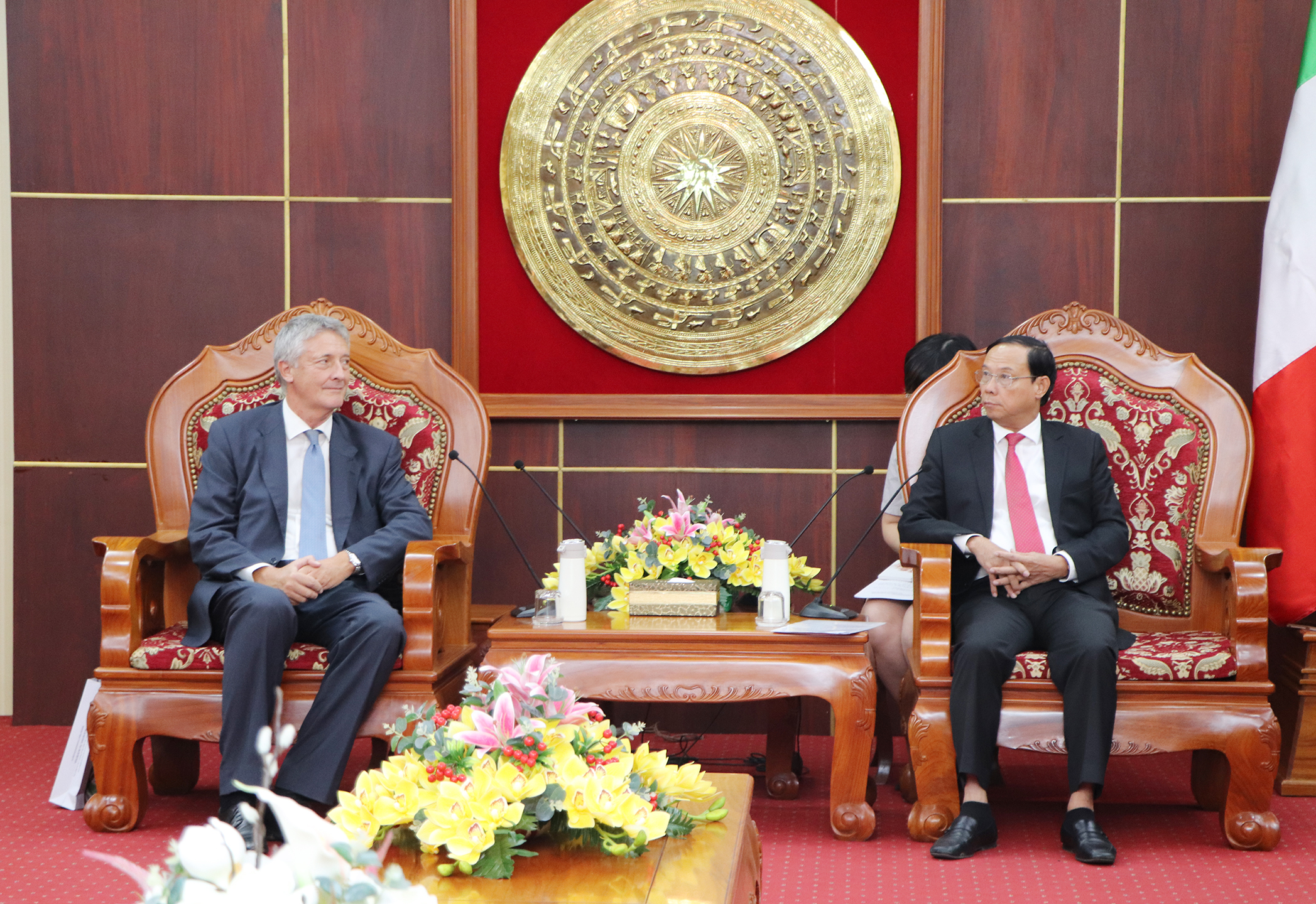 Chiều 6/9, ông Nguyễn Văn Thọ, Chủ tịch UBND tỉnh tiếp ông Enrico Padula, Tổng Lãnh sự Italia tại TP.Hồ Chí Minh tới thăm, làm việc tại tỉnh.