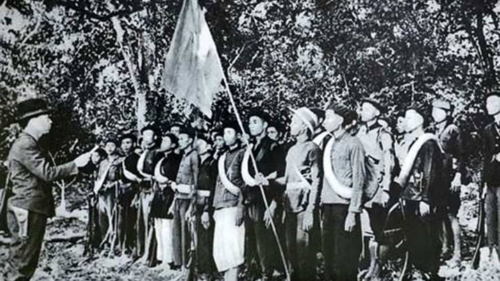 | Đội Việt Nam Tuyên truyền Giải phóng quân làm lễ thành lập. Ảnh: Tư liệu |