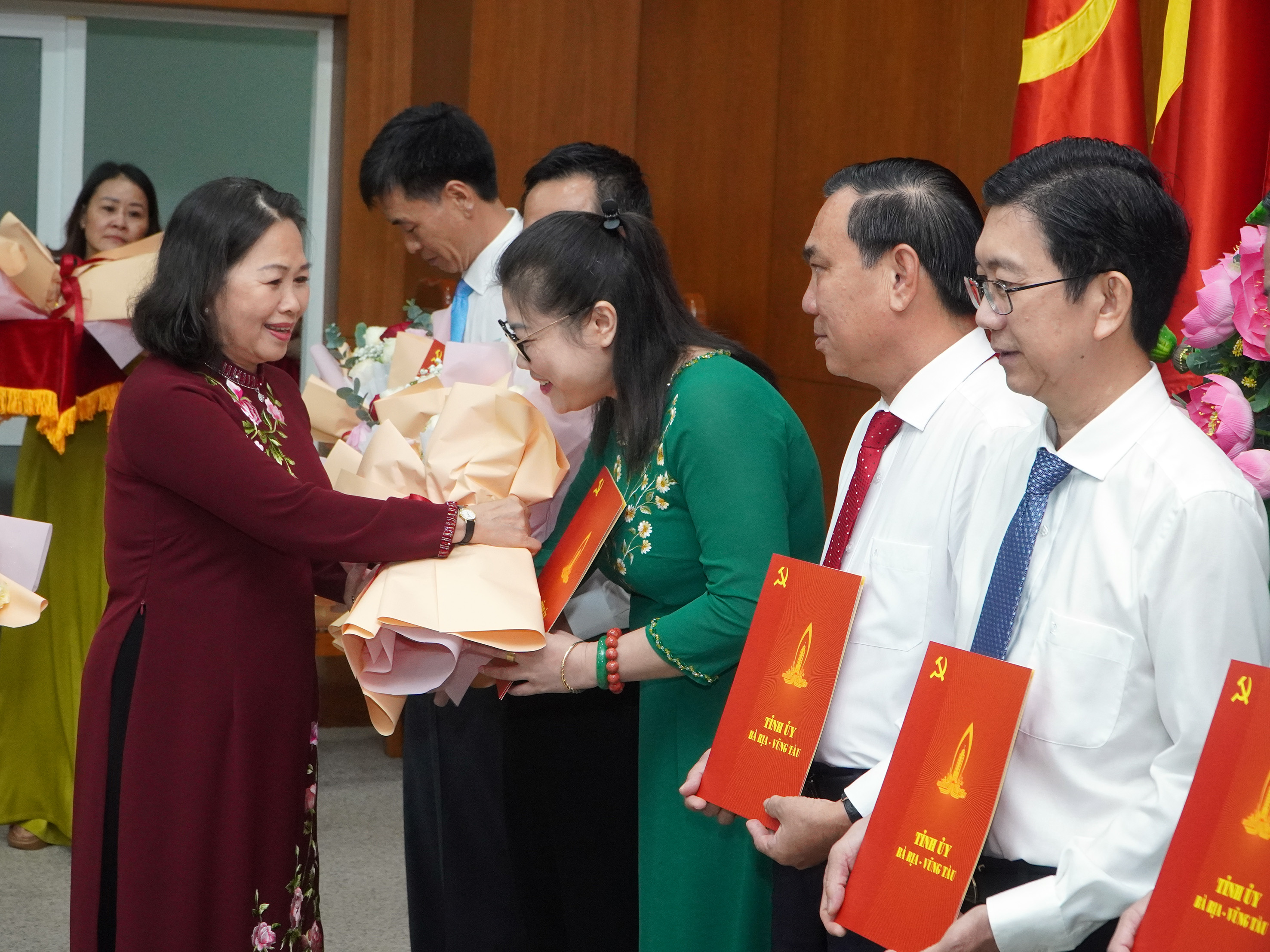 | Thường trực Tỉnh ủy tặng hoa chúc mừng các bộ được điều động, bổ nhiệm. |