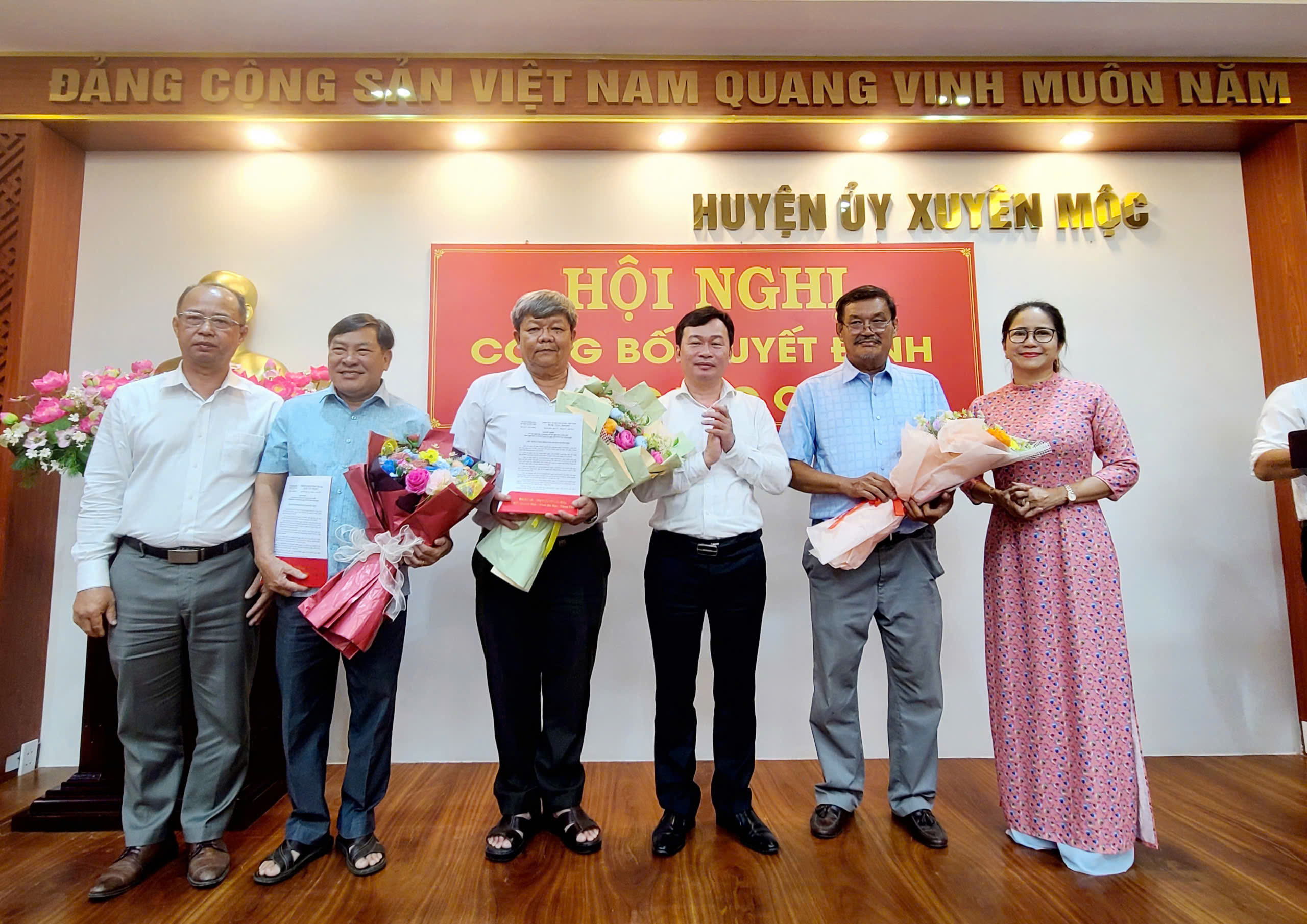 | Lãnh đạo huyện Xuyên Mộc trao các quyết định về công tác cán bộ. |