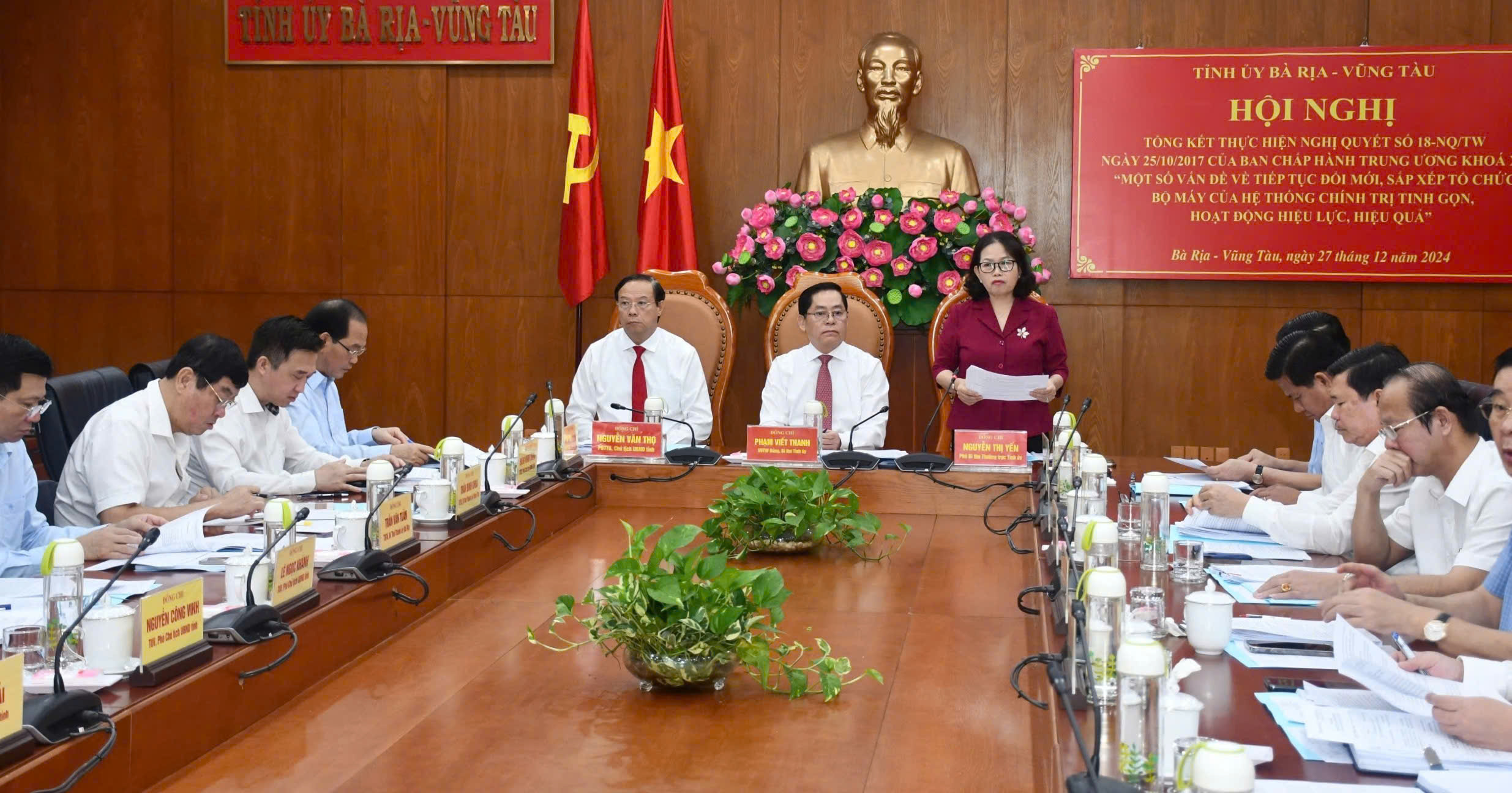 Phát biểu tại hội nghị Ban Chấp hành Đảng bộ tỉnh tổng kết Nghị quyết số 18-NQ/TW của Ban Chấp hành Trung ương khóa XII vào ngày 27/12, ông Phạm Viết Thanh, Ủy viên Trung ương Đảng, Bí thư Tỉnh ủy, Chủ tịch HĐND tỉnh nhấn mạnh việc Trung ương tiếp tục thực hiện Nghị quyết số 18 là cơ hội để tổ chức bộ máy của hệ thống chính trị Bà Rịa-Vũng Tàu tiếp tục gọn, nhẹ nhưng mạnh mẽ, hoạt động hiệu lực, hiệu quả, thực hiện mục tiêu kinh tế tăng trưởng 2 con số trong nhiệm kỳ 2025-2030.