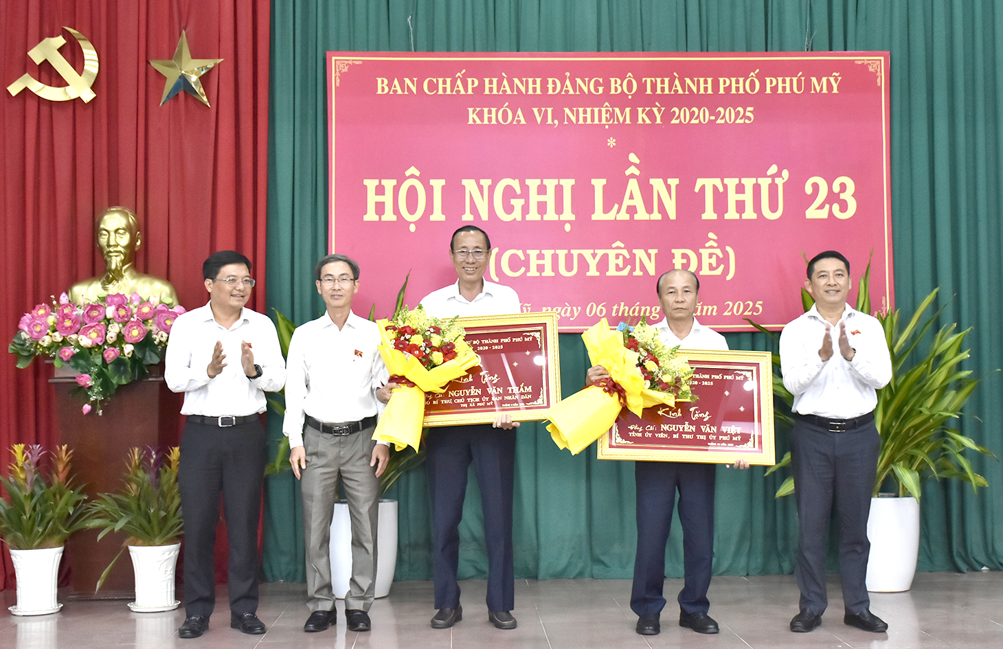Trong khuôn khổ hội nghị, Ban Chấp hành Đảng bộ TP.Phú Mỹ đã gặp mặt, tri ân các Ủy viên Ban Chấp hành Đảng bộ TP.Phú Mỹ khóa VI, nhiệm kỳ 2020-2025 gồm: ông Nguyễn Văn Việt, Tỉnh ủy viên, nguyên Bí thư Thành ủy Phú Mỹ đã được điều động giữ chức vụ Phó Bí thư Đảng ủy UBND tỉnh; ông Nguyễn Văn Thắm, Chủ tịch UBND thành phố được Ban Thường vụ Tỉnh ủy cho thôi tham gia công tác chờ giải quyết chế độ theo quy định; ông Trương Trọng Ngân, Trưởng Ban Dân vận Thành ủy, Chủ tịch UBMTQ Việt Nam thành phố được cho thôi tham gia công tác, chờ giải quyết chế độ nghỉ hưu; Thượng tá Lê Văn Hoàn, Chính trị viên Ban CHQS thành phố được nghỉ công tác, chờ giải quyết chế độ nghỉ hưu theo quy định; Thượng tá Nguyễn Thanh Bình, nguyên Trưởng Công an thành phố và Thượng tá Lê Anh Đại, Phó trưởng Công an thành phố được điều động nhận nhiệm vụ mới tại Công an tỉnh.