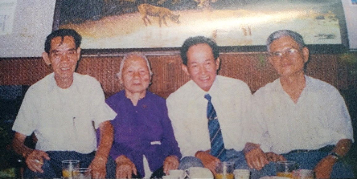 | Đại tá Nguyễn Văn Tàu (thứ 2, bìa phải), Thiếu tướng Phạm Xuân Ẩn (bìa trái) và 2 đồng đội Cụm tình báo H63 Nguyễn Thị Ba, Nguyễn Văn Minh. Ảnh nhân vật cung cấp. |