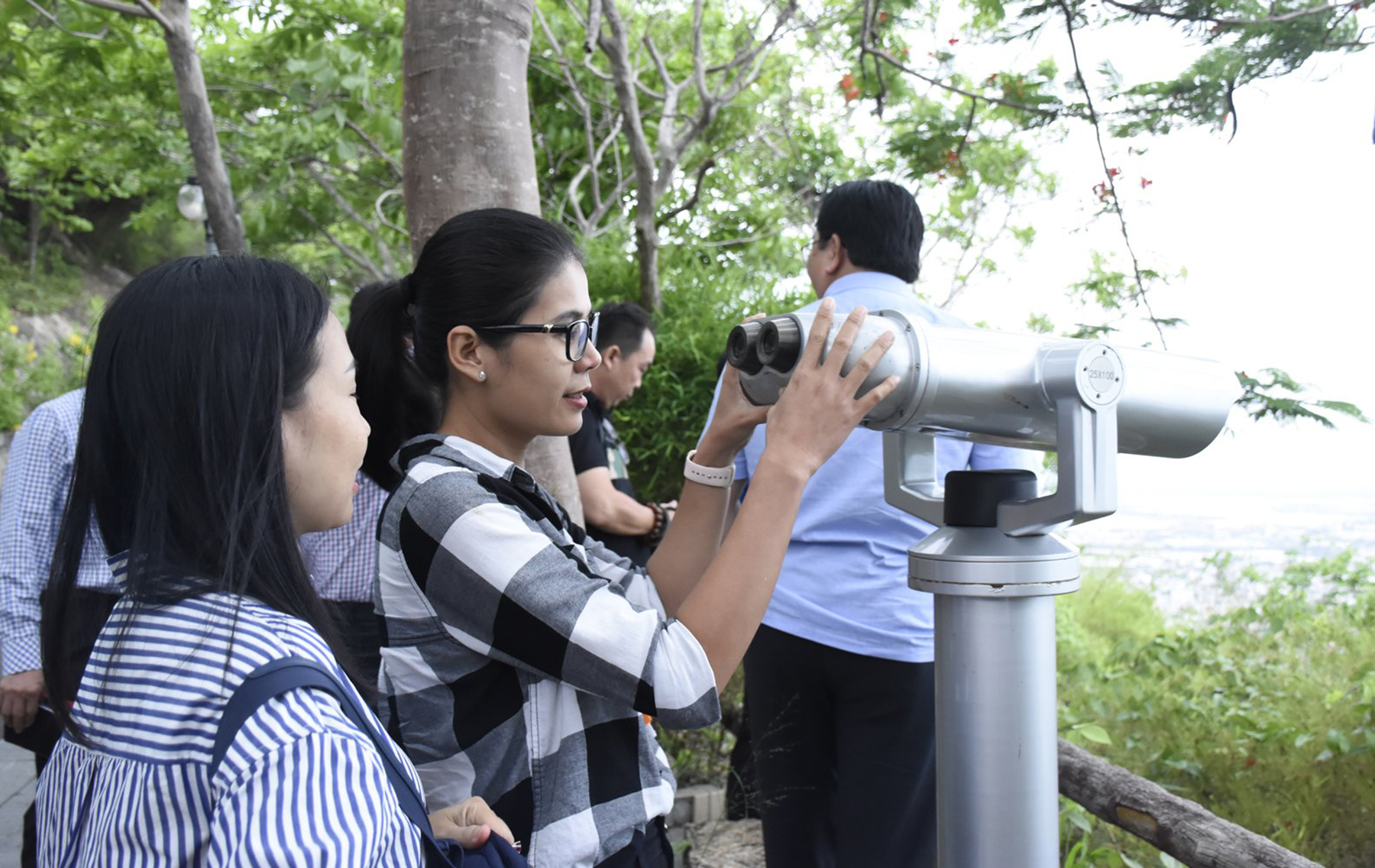 | Du khách ngắm cảnh Vũng Tàu từ Hồ Mây Park. |