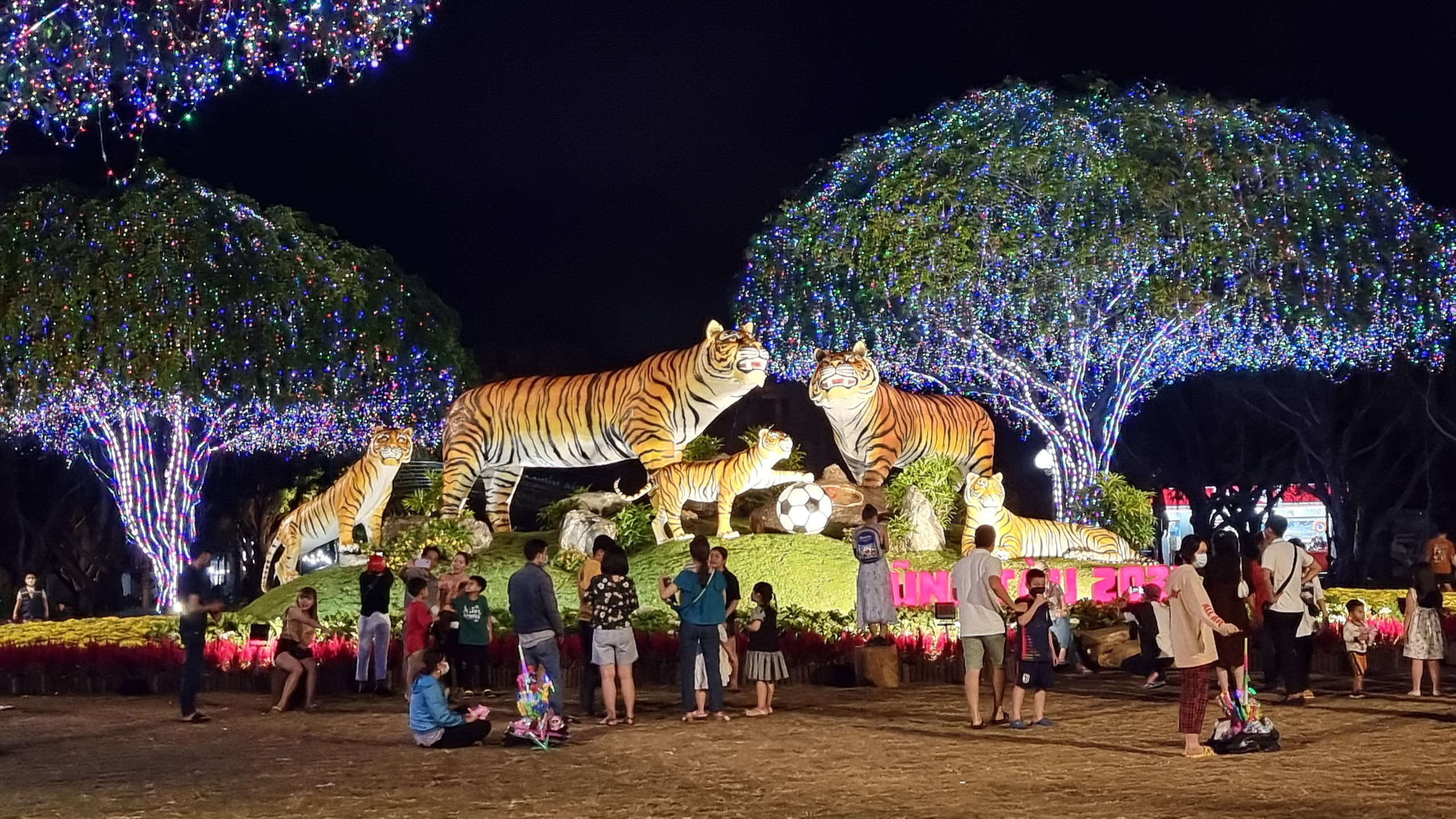| Linh vật hổ và đèn điện trang trí tại công viên Bãi Trước là điểm đến thuận tiện để người dân và du khách vui chơi, chụp ảnh. |