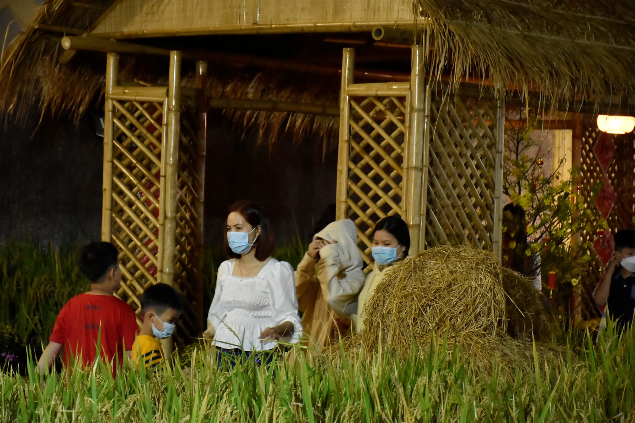 | Tiểu cảnh đồng lúa tái hiện khung cảnh làng quê giữa phố trị tại đường hoa Xuyên Mộc. |