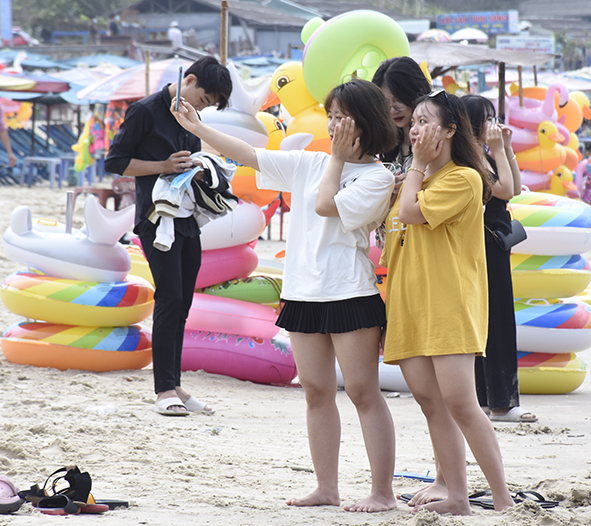 | Du khách "check in" bãi tắm Thùy Vân dịp Tết Dương lịch vừa qua. |