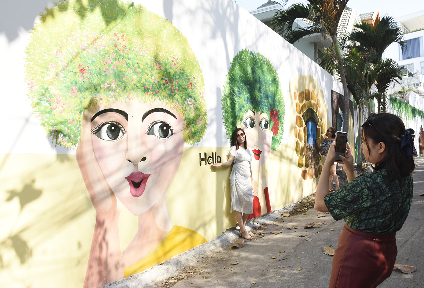 | Công trình đường tranh dài hơn 100m tại hẻm số 6 Trần Phú cũng là điểm “check in” được yêu thích. Dù đã ra mắt đã gần 1 năm (từ tháng 2/2021) nhưng các bức vẽ đều còn rất mới. |