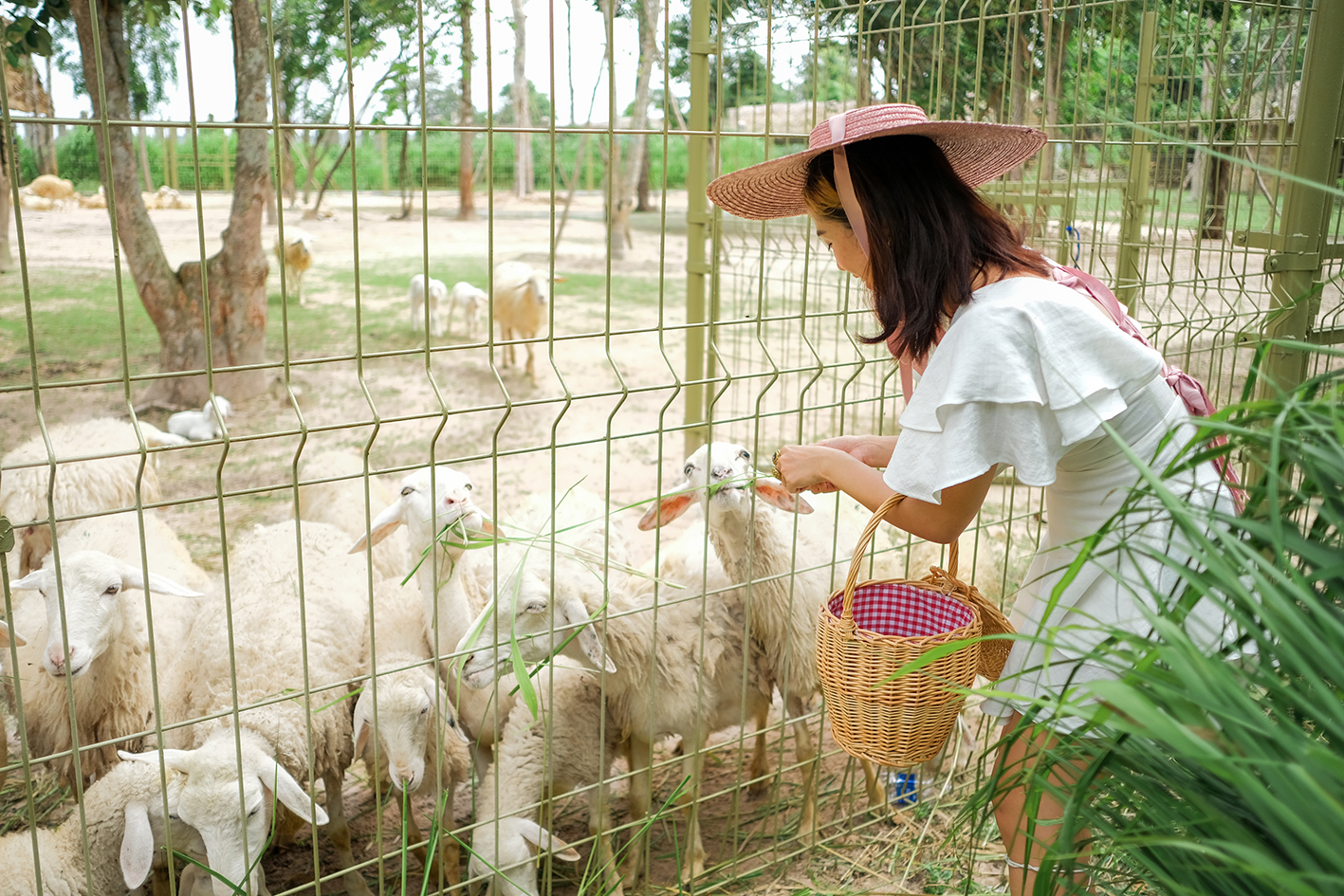 | Những điểm đến mới, vắng người, gần gũi thiên nhiên được du khách ưa chuộng sau dịch. Trong ảnh: Du khách trải nghiệm chăm sóc cừu tại Minera Hot Springs Binh Chau. |