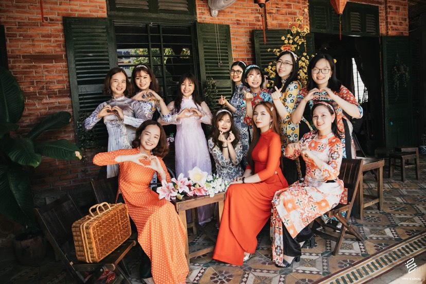 | Nhóm du khách nữ diện bộ sưu tập áo dài của shop 1995 Store chụp hình tại Mộng cà phê, TP. Vũng Tàu. |