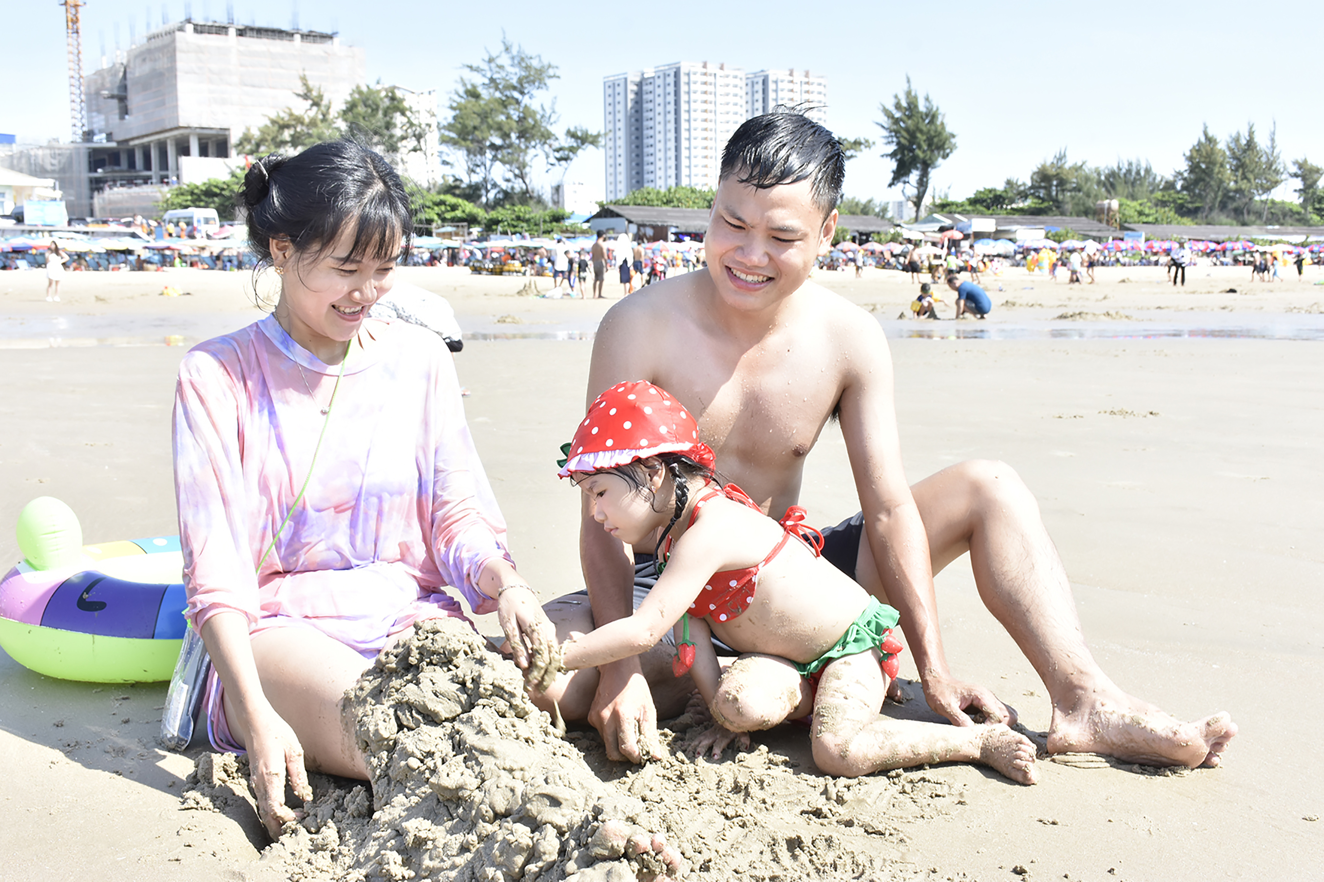 | Du khách Trần Văn Nghĩa (Bình Dương) cùng vợ con vui chơi tại Bãi Sau, TP. Vũng Tàu ngày 2/9. |