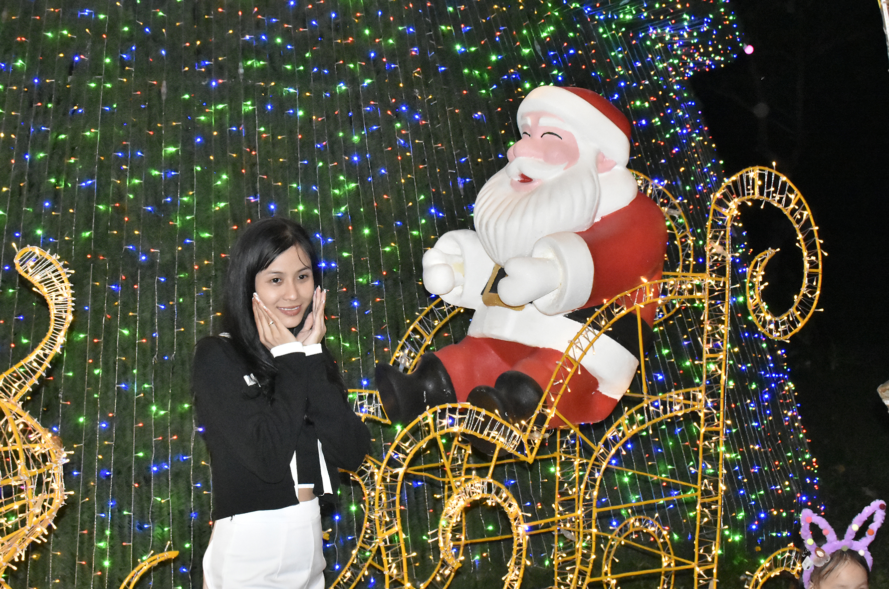 Ngược về Bãi Sau, ngay công viên mũi Nghinh Phong là cây thông khổng lồ cùng biểu trưng đón năm mới 2023. Cây thông 6 tầng cao hơn 15m, lấp lánh đèn led. Phía trước tiểu cảnh đàn tuần lộc đèn vàng lấp lánh chở ông già tuyết, hàng hoa sứ xung quanh đều được thắp đèn màu khiến khu vực này rực sáng lung linh. Không ít người dân địa phương cũng như du khách thích thú chụp ảnh, dạo chơi tại đây cả ngày và đêm. Nhiều người chia sẻ, dù các phối cảnh này được TP.Vũng Tàu làm mỗi dịp Giáng sinh nhiều năm nay, nhưng được trang hoàng lại nên vẫn rất mới mẻ, cuốn hút.