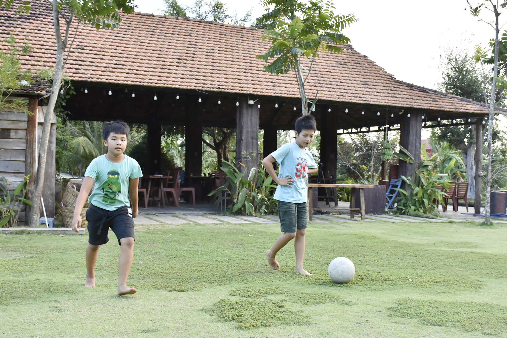 Khuôn viên Công viên Binon Cacao rộng lớn, hàng trăm cây dầu cổ thụ xòe tán xua tan nắng nóng oi bức ngày hè. Đặc biệt, dáng thẳng tít tắp của hàng dầu cổ thụ soi bóng xuống các hồ nước trong vắt trong khuôn viên, làm khung cảnh trở nên lãng mạn, trữ tình chẳng kém châu Âu.