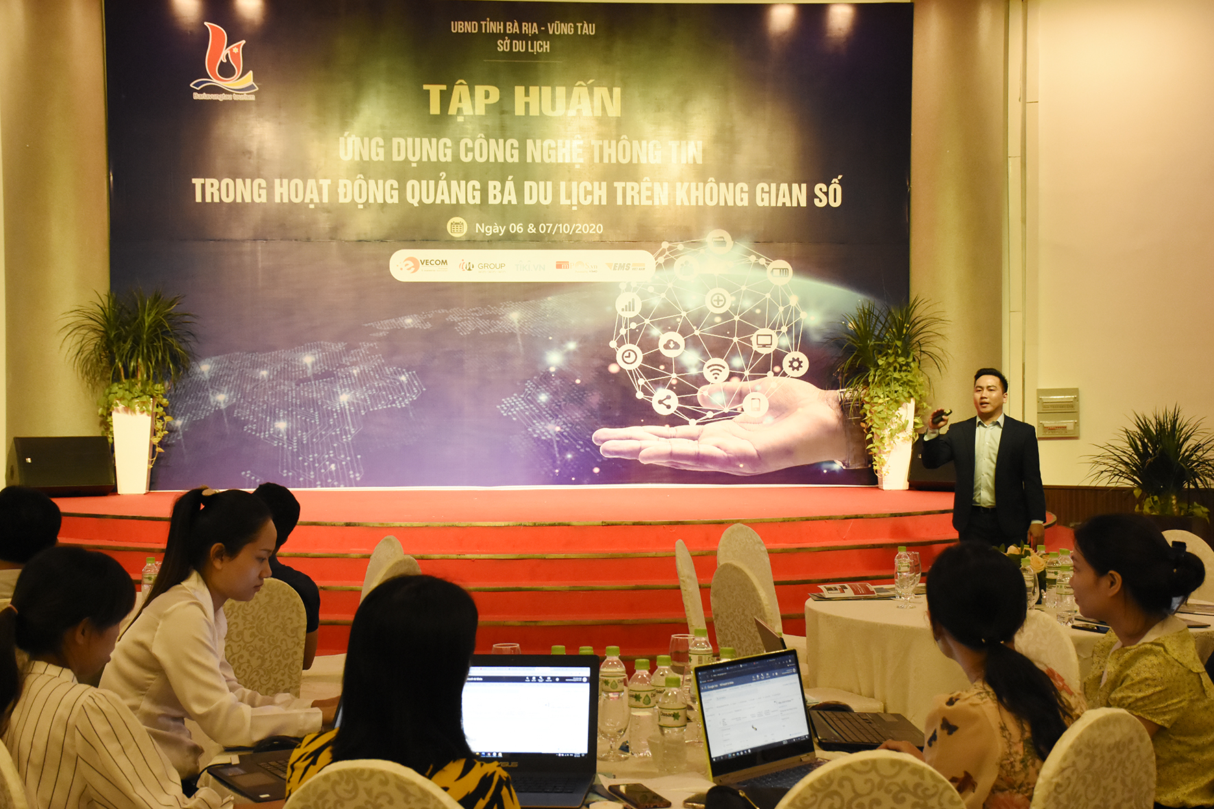 | Một lớp tập huấn công nghệ số do Sở Du lịch tổ chức cho DN du lịch. |