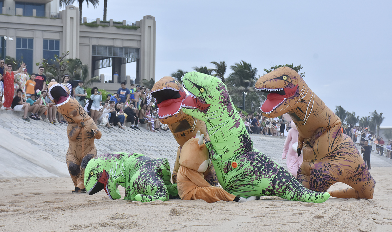| Các linh vật vất vả lội cát thi tài chạy bộ mang lại tiếng cười sảng khoái cho người xem |