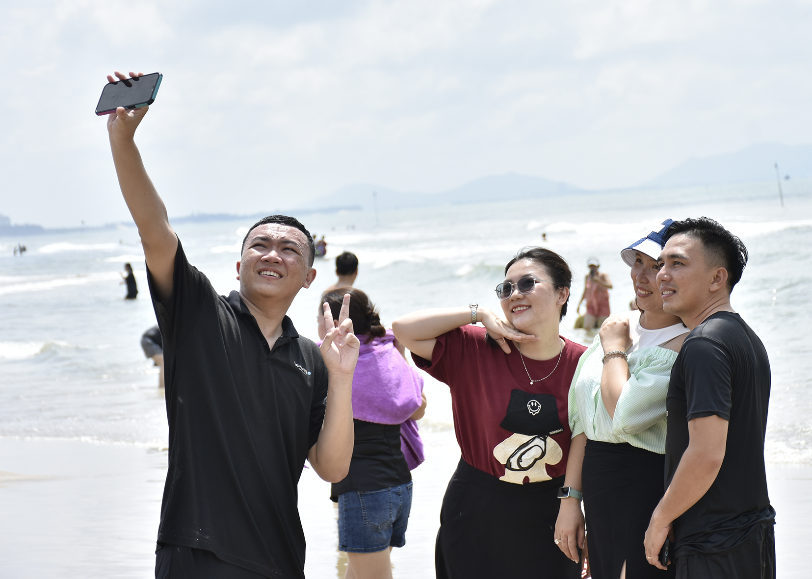 | Du khach check in tại bãi tắm Thùy Vân. |
