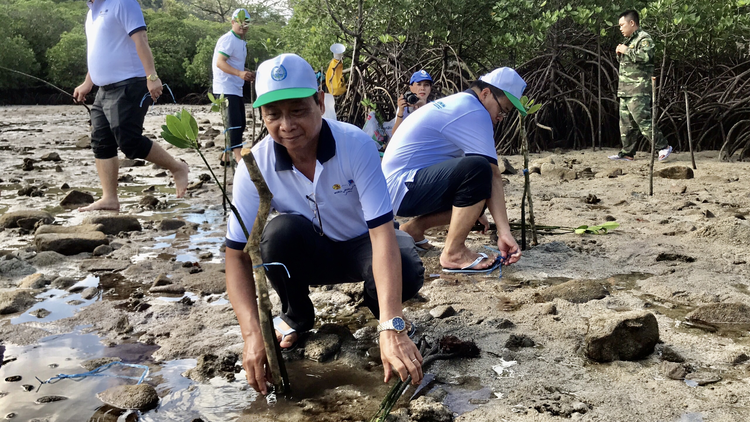 | Cán bộ Sở TN-MT trồng rừng ngập mặn tại VQG Côn Đảo. |