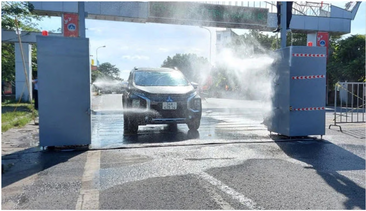 Hệ thống máy phun khử khuẩn tự động có thể hoạt động 24/24 giờ, dưới mọi điều kiện thời tiết. Dung dịch tỏa ra đều khắp bề mặt xe cơ giới giúp tiết kiệm nhân lực và dung dịch, nhanh, hiệu quả hơn cách làm thủ công như trước. Hơn thế, các loại xe ôtô khi đi qua không phải dừng lại mà vẫn lăn bánh với vận tốc 5 km/giờ, không gây ùn tắc giao thông.