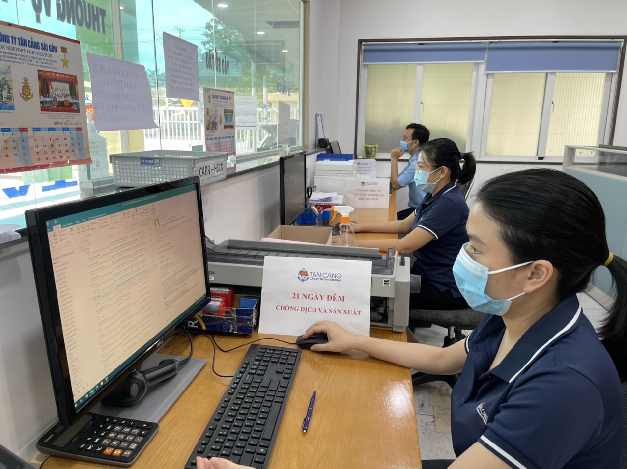 | Nhân viên Cảng TCTT đã được bố trí “3 tại chỗ” để thực hiện mục tiêu kép. |