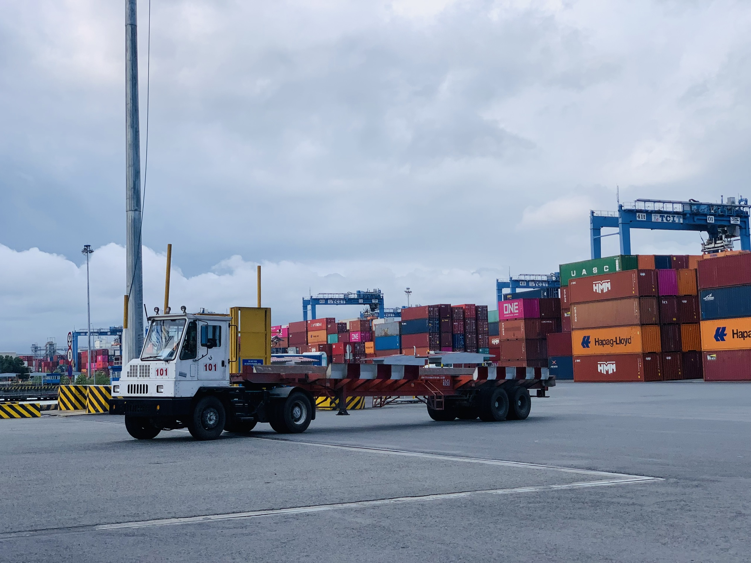 | Xếp dỡ hàng container tại cảng TCIT. |