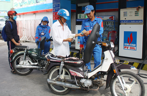 | Khách hàng đổ xăng tại cửa hàng xăng dầu số 8 của PV Oil trên đường Lê Lợi, TP. Vũng Tàu. |