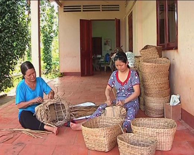 | Phụ nữ xã Long Tân (huyện Đất Đỏ) có thêm nguồn thu nhập từ nghề đan giỏ lục bình. |