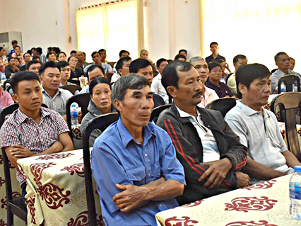 | Người dân tham dự buổi đối thoại vào ngày 14-6-2018 với lãnh đạo tỉnh về giao khoán đất rừng tại Công ty TNHH MTV Lâm nghiệp BR-VT. |