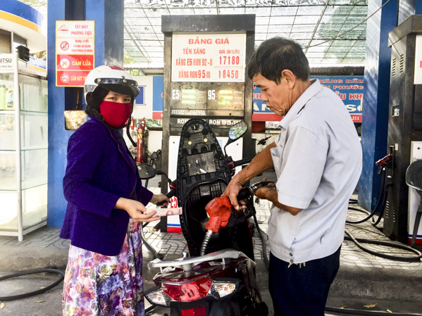 | Khách hàng đổ xăng tại cửa hàng xăng dầu trên đường Trần Hưng Đạo, TP.Vũng Tàu. (Ảnh chụp lúc lúc 15 giờ 10 ngày 6-12). |