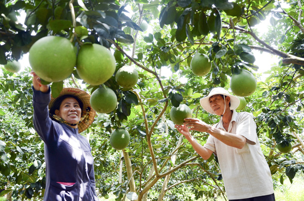| Mô hình trồng bưởi da xanh tại xã Sông Xoài, thị xã Phú Mỹ đem lại hiệu quả kinh tế cao, góp phần nâng cao đời sống nông dân địa phương. Ảnh: QUANG VŨ |
