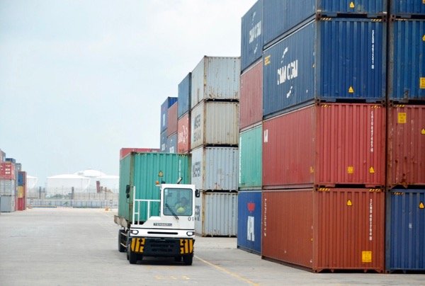 | Xe chở hàng ra vào liên tục tại khu vực chứa container của cảng TCIT. |