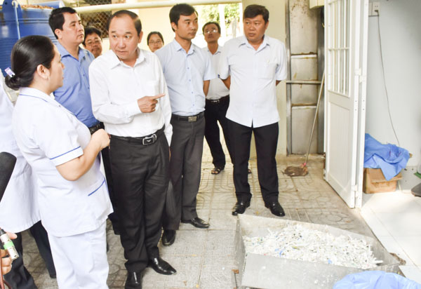 | Đoàn khảo sát của HĐND tỉnh kiểm tra chất lượng xử lý rác thải y tế tại BV Bà Rịa. |