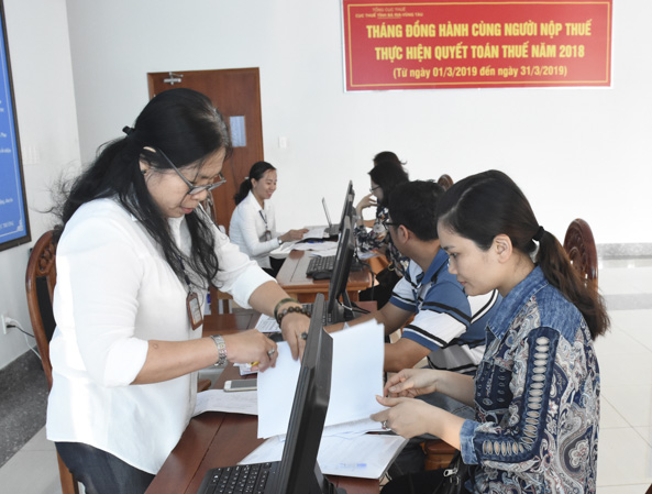 | Người dân làm thủ tục quyết toán thuế tại Cục Thuế tỉnh. |
