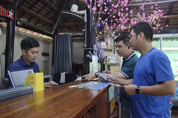 | Du khách làm thủ tục nhận phòng tại KDL Hồ Mây sáng mùng 3 Tết. |