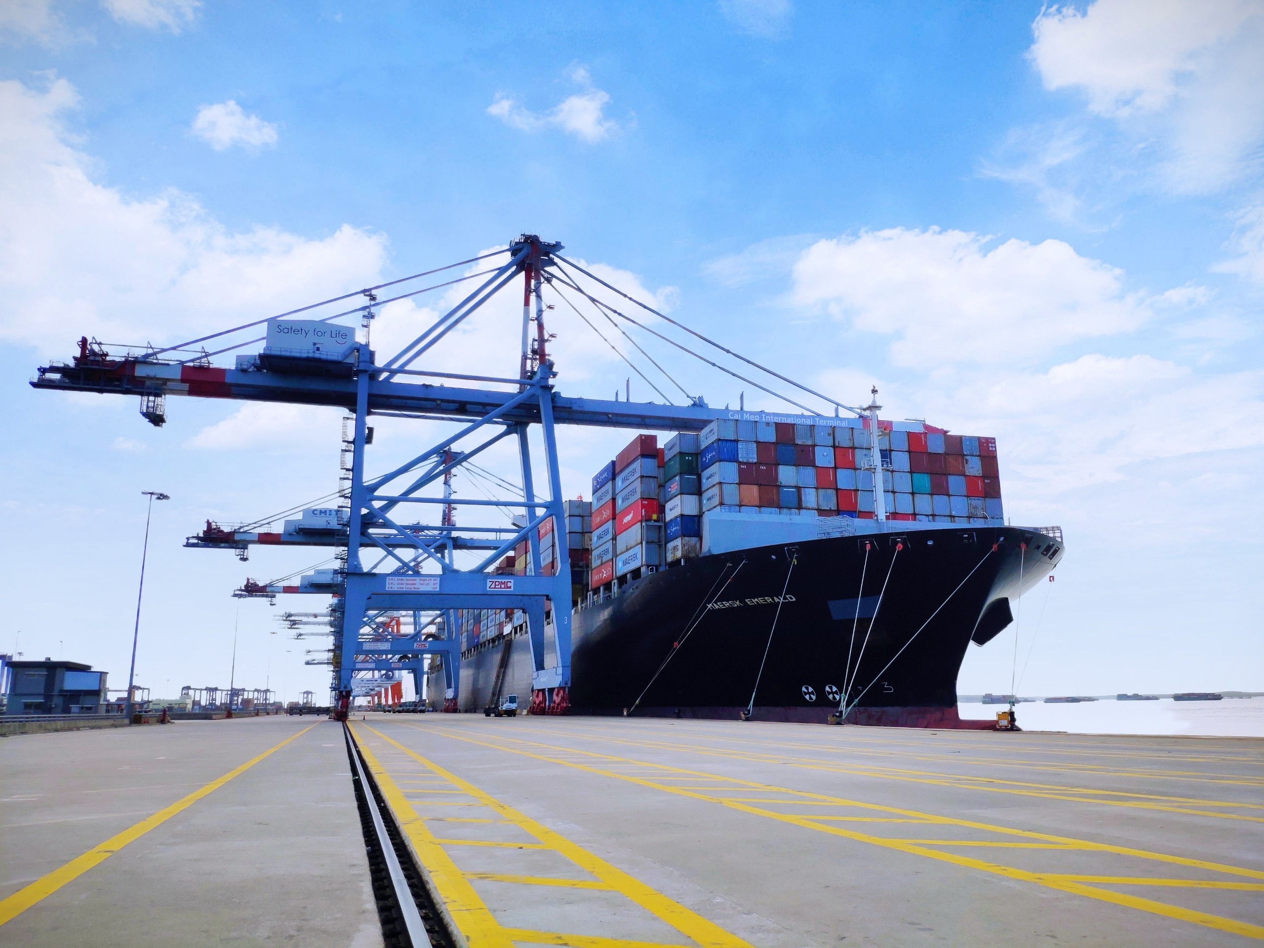 | Tàu CMA CGM Marco Polo trọng tải 145 ngàn DWT cập cảng CMIT làm hàng. |