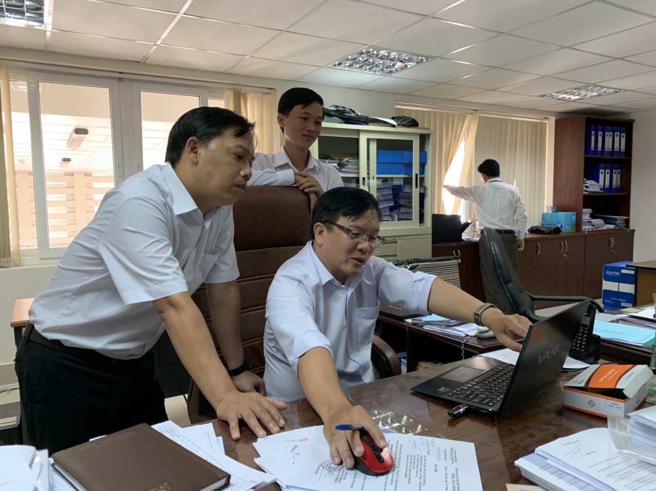 | Đoàn kiểm tra CCHC tỉnh kiểm tra các thủ tục tại Sở KH-ĐT. |