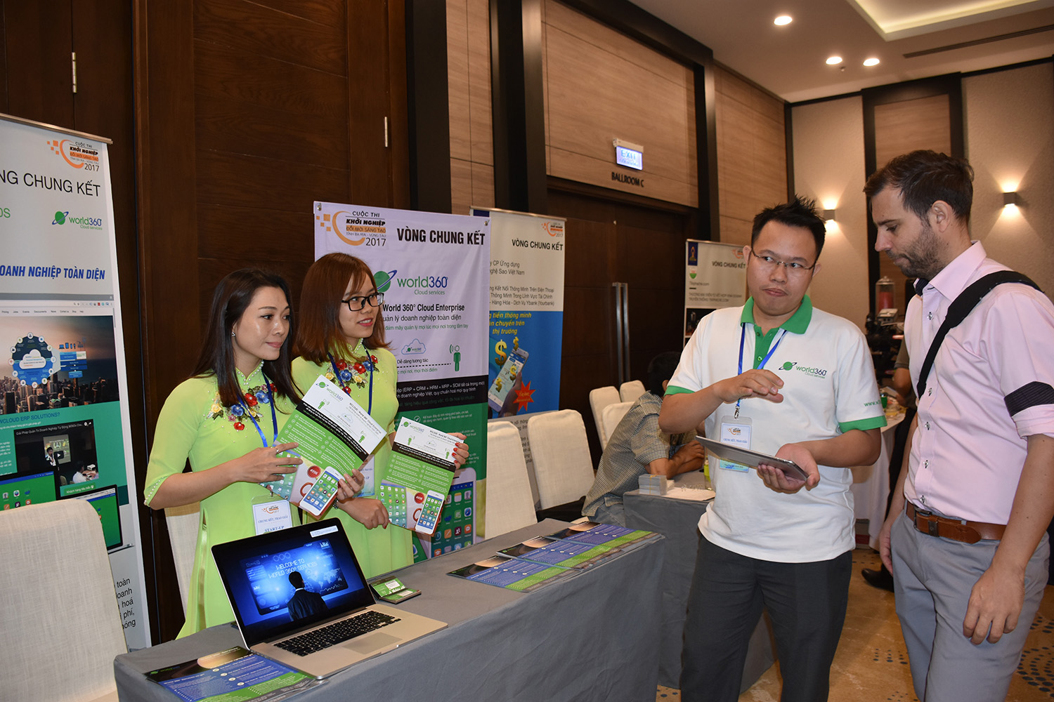 | Anh Lê Bá Châu giới thiệu các ứng dụng của công ty với đối tác nước ngoài tại khách sạn Malibu (TP. Vũng Tàu). |